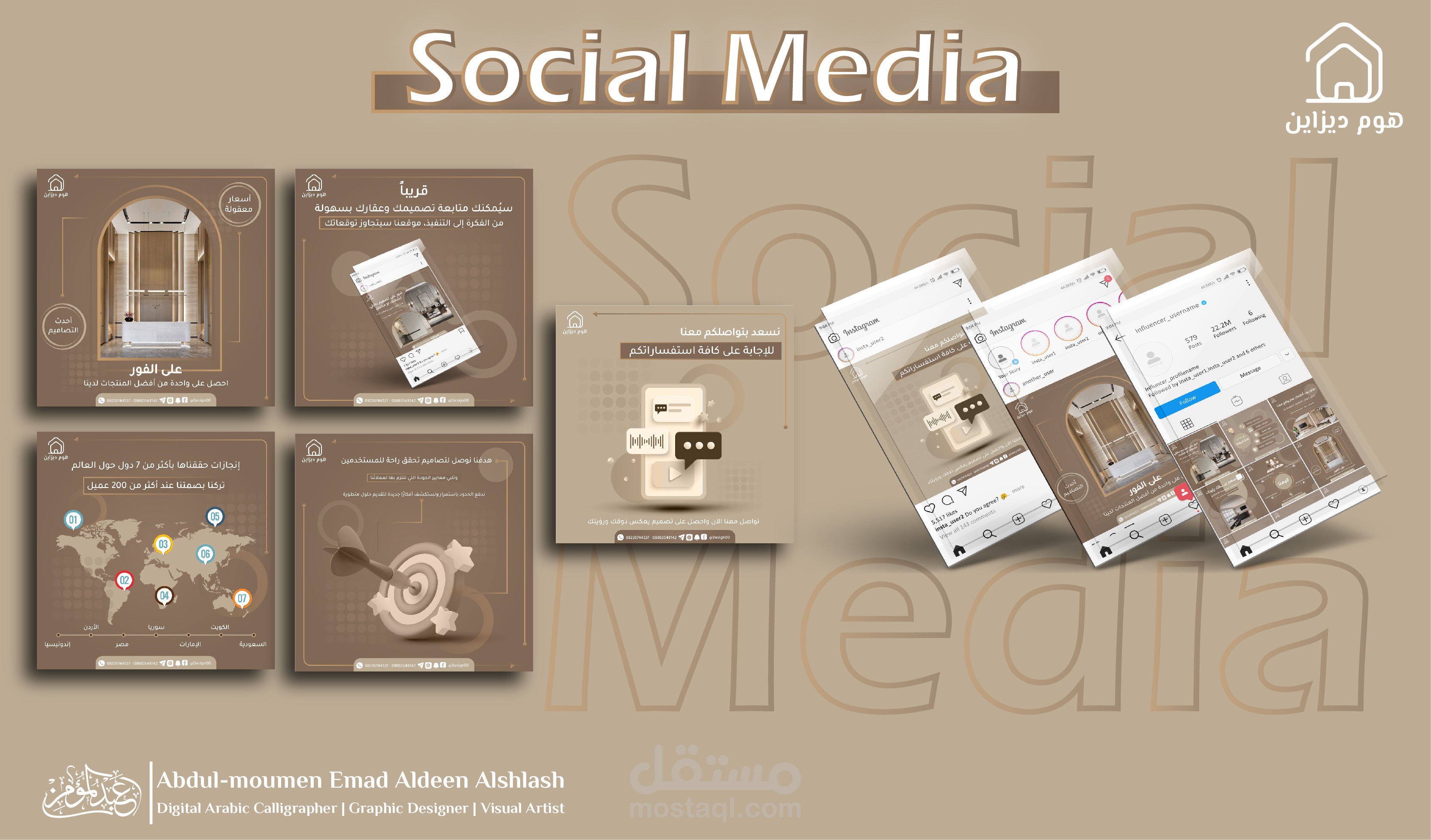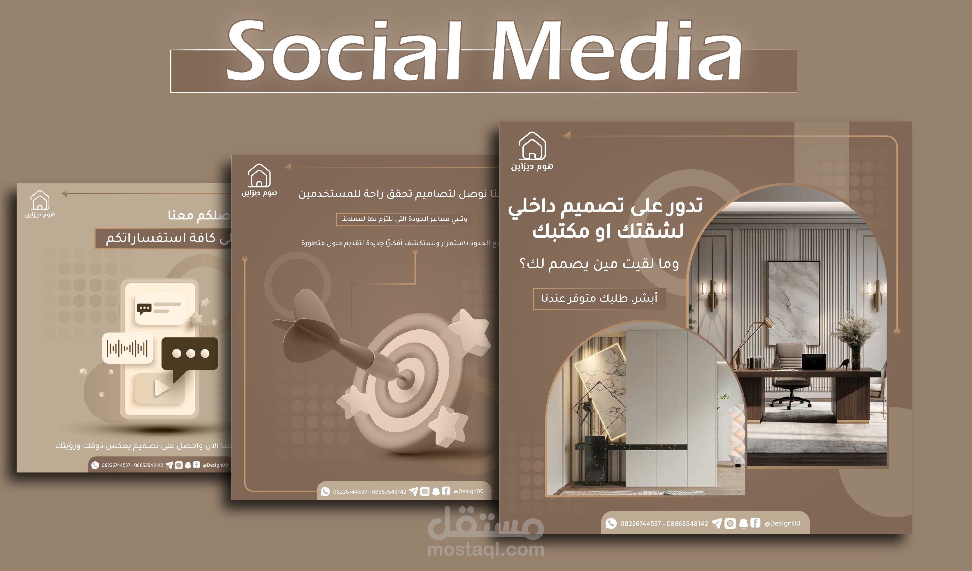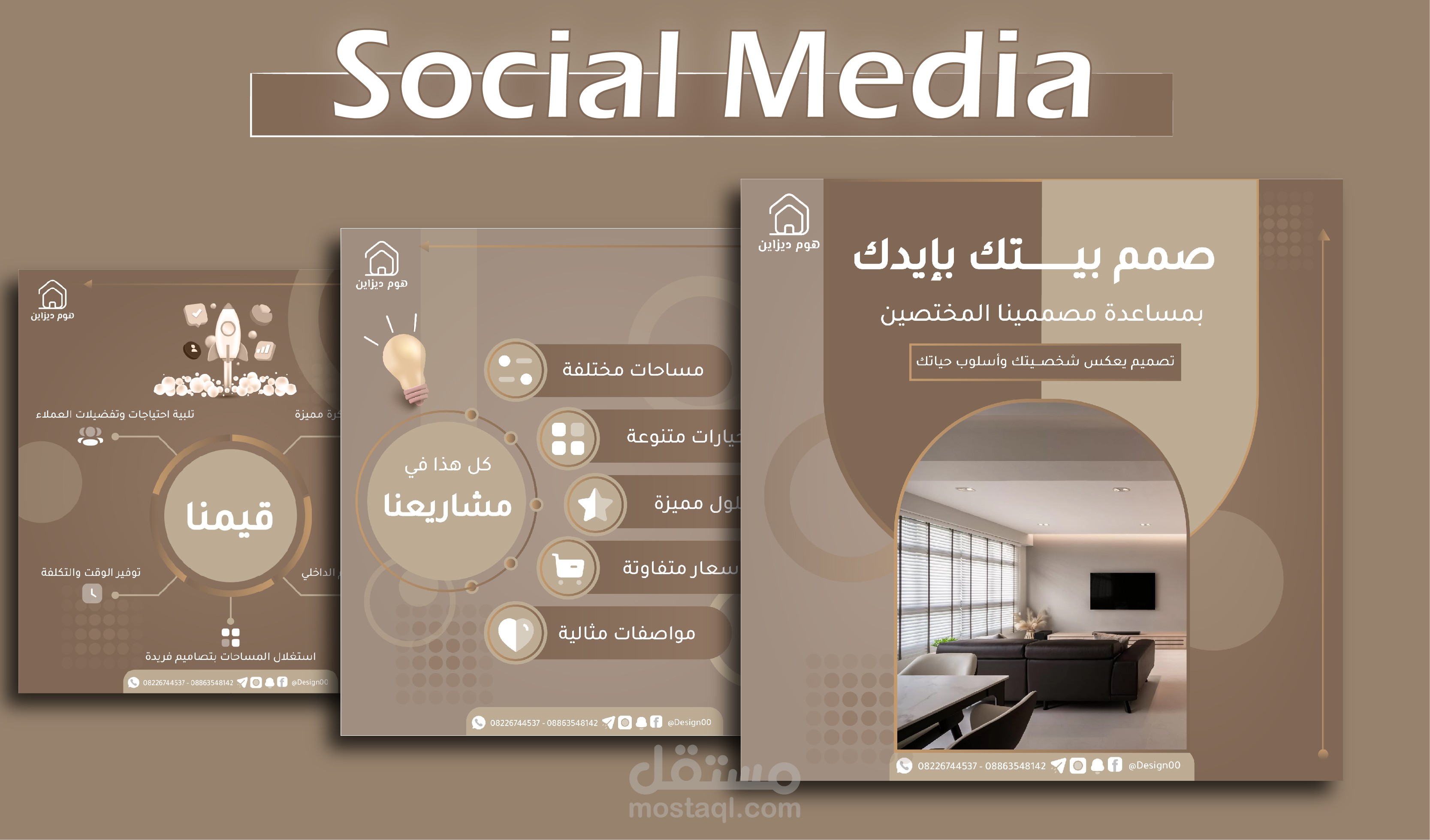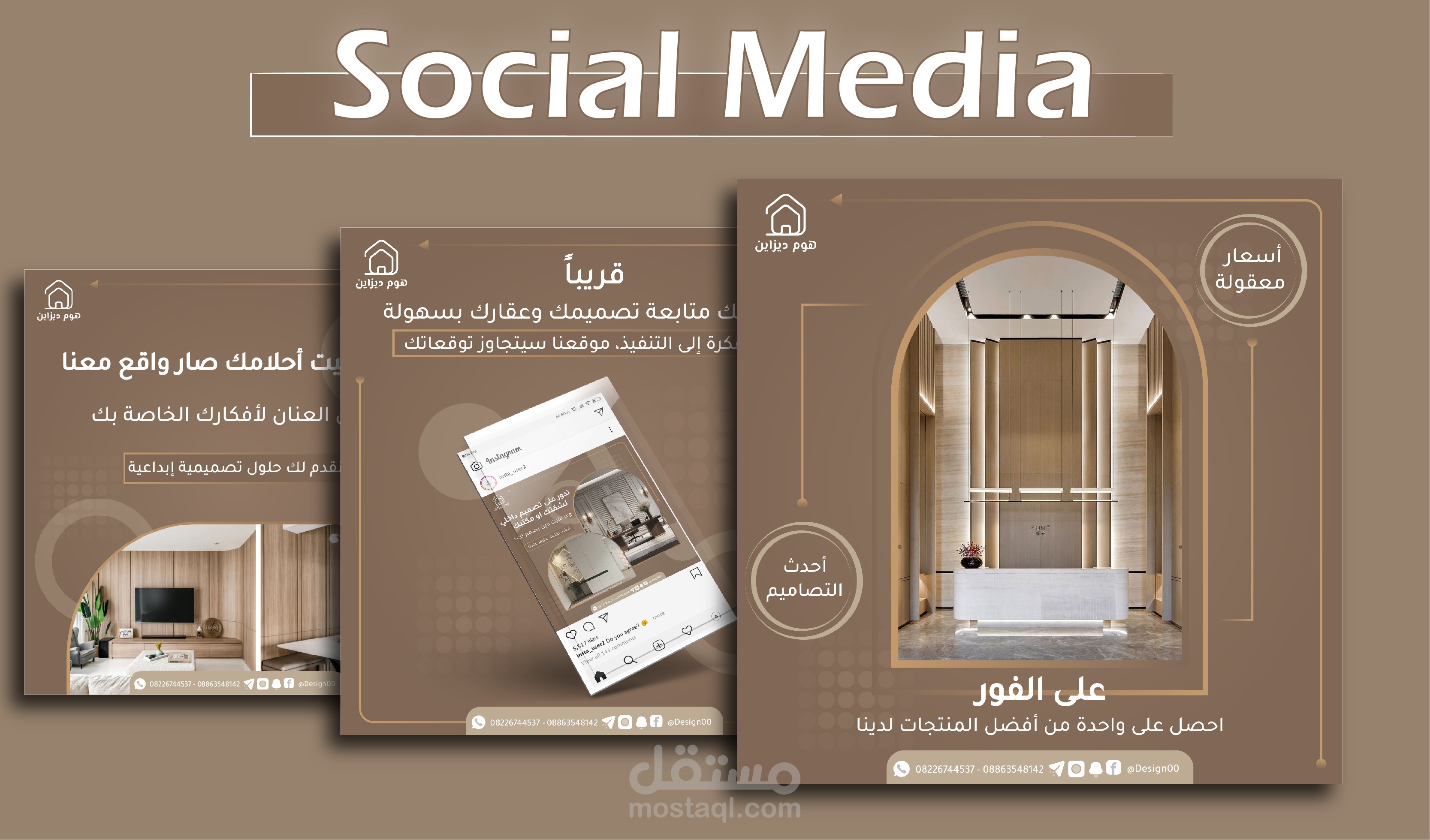 مرحبا وأهلا وسهلا بكم في معرض أعمالنا Home Design | Social Media Design 02 لتصميم منشورات التواصل الاجتماعي، نحن ملتزمون بتقديم خدمات تصميم بمهارة وإبداع باستخدام أفضل البرامج والتقنيات والأدوات، نحن نقدّر جداً ونفهم أهمية المنشورات كوسيلة عرض منتجاتكم وعروضكم لنشاطكم التجاري، كما سنعمل بكل جد واحترافية وإبداع لتقديم منشورات تعكس جوهر عملكم بشكل مميز جداً، سيكون لدينا تركيز كامل على فهم رؤيتكم ومتطلباتكم لتصاميم فريدة تلبي توقعاتكم وتميز علامتكم التجارية عن الآخرين.