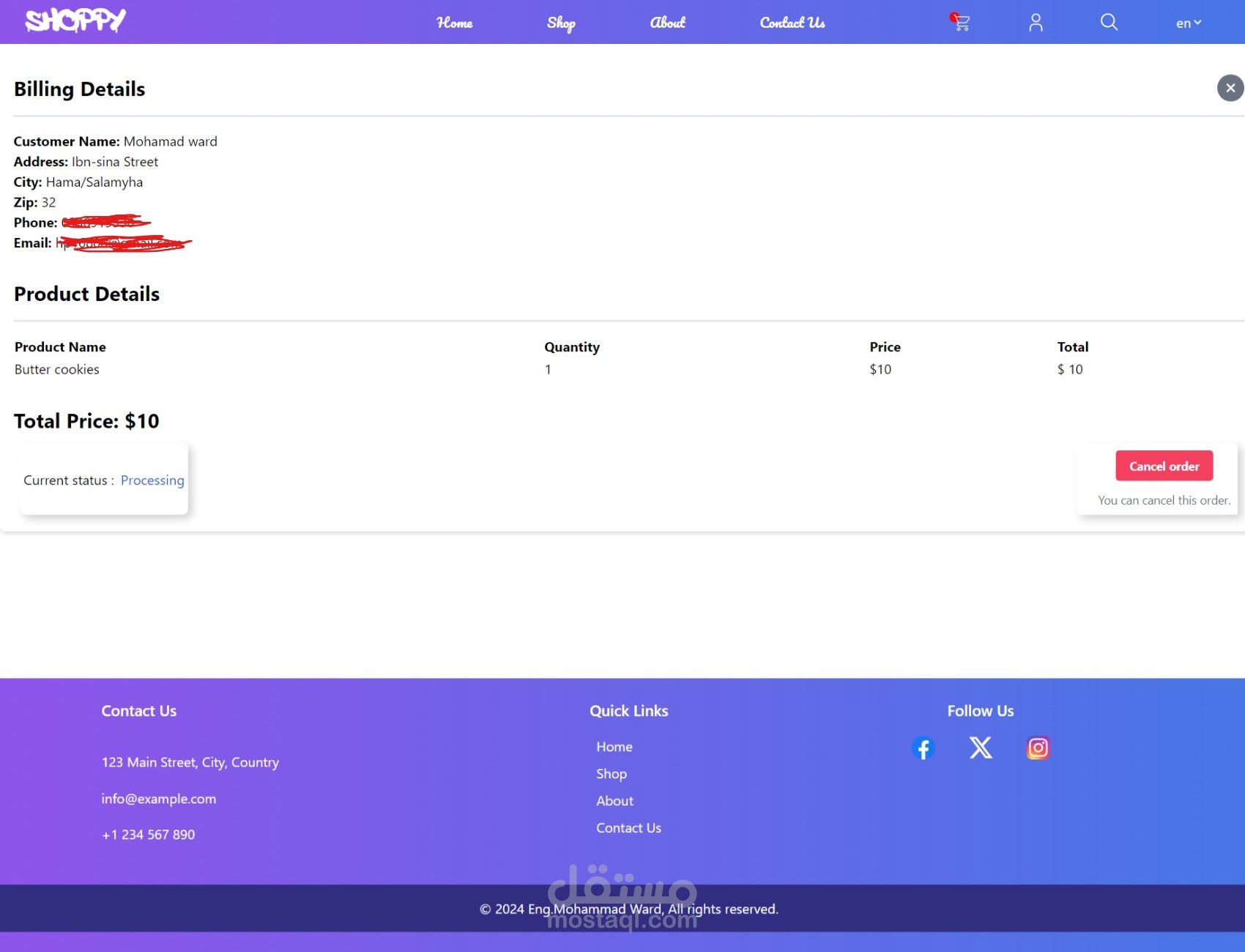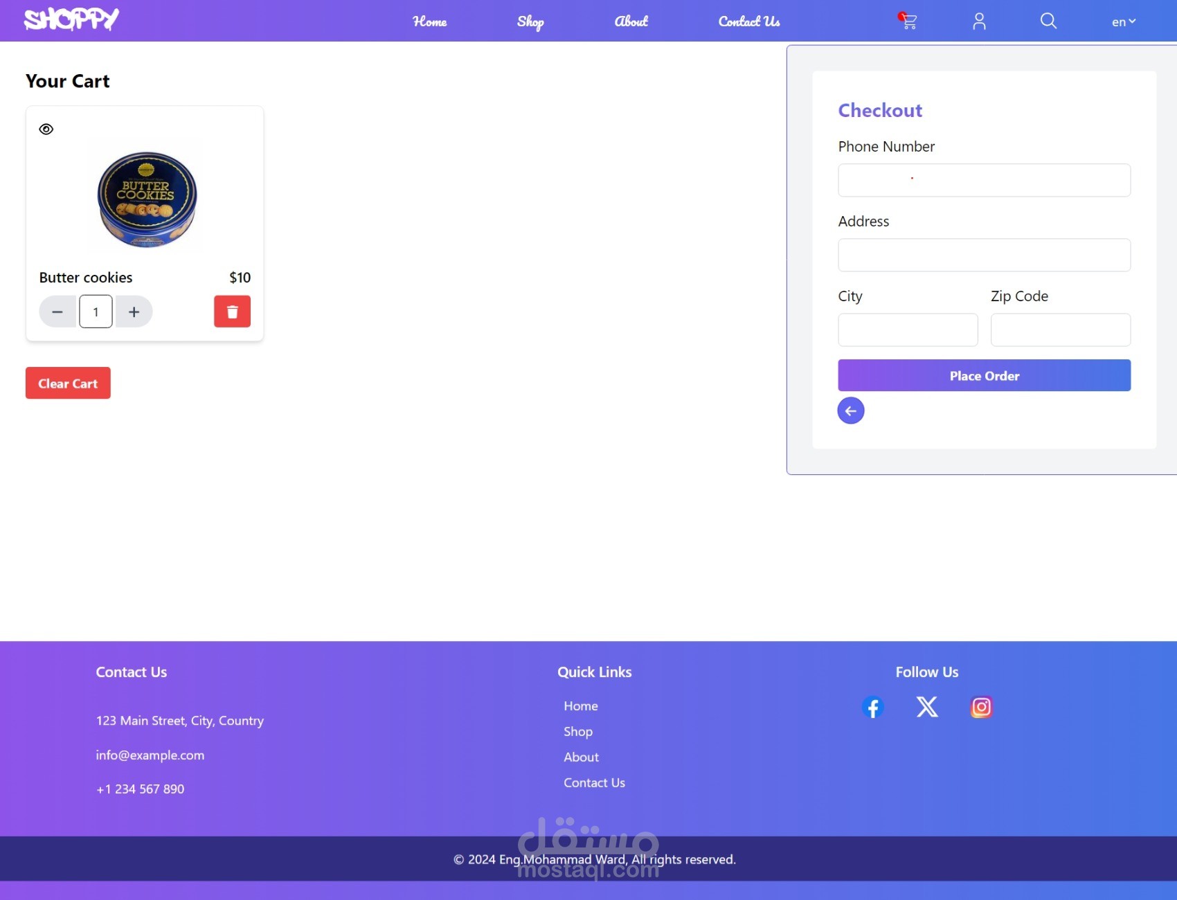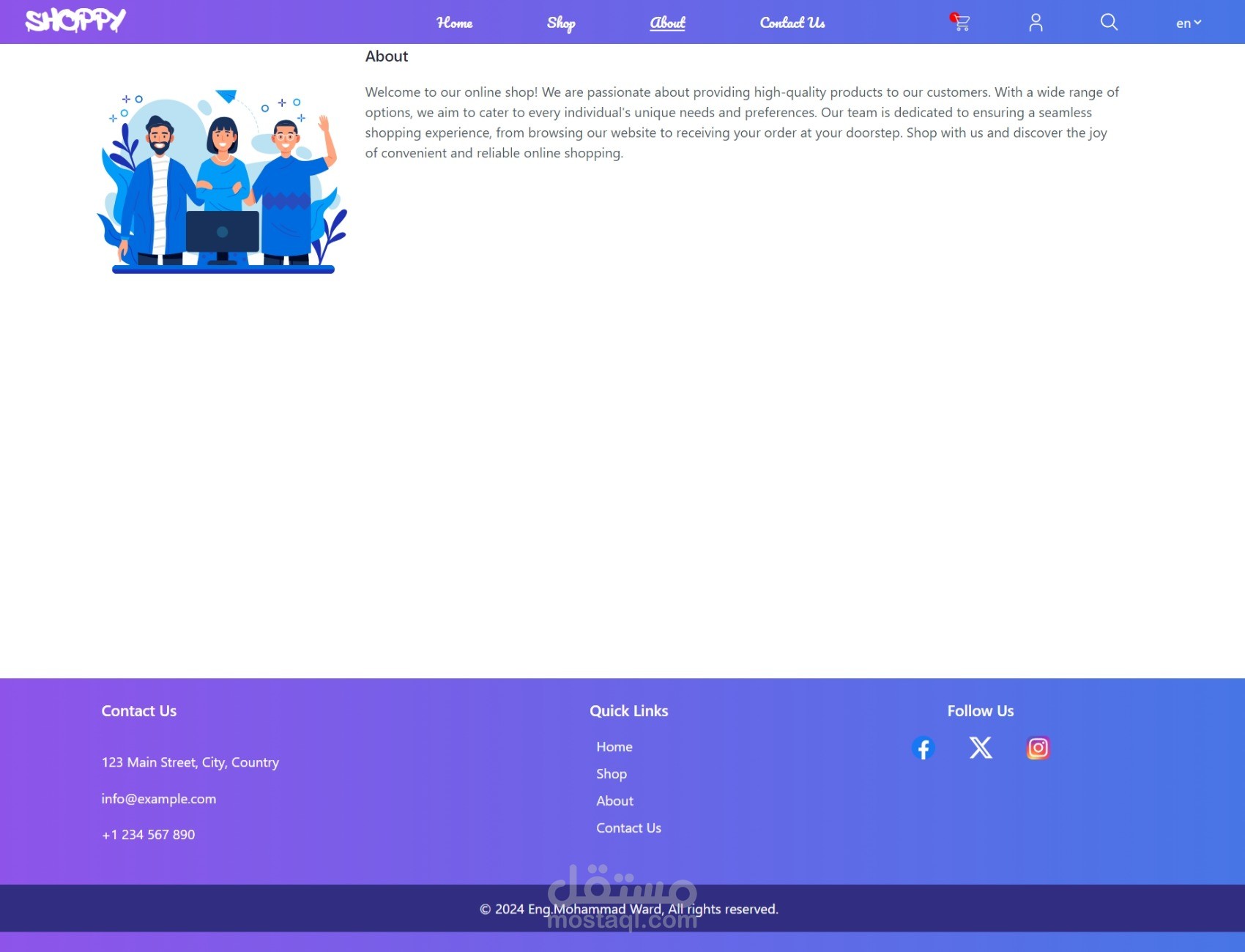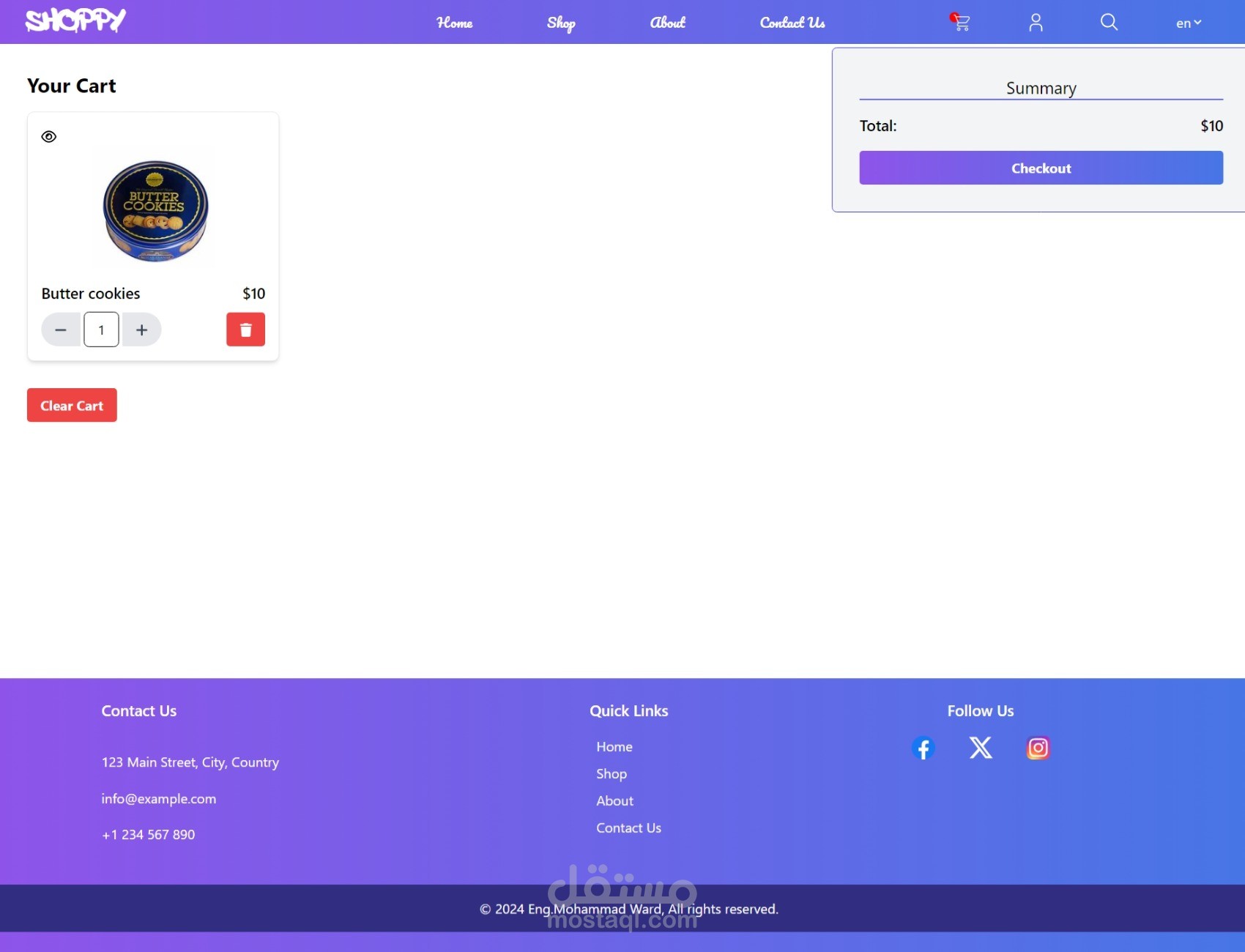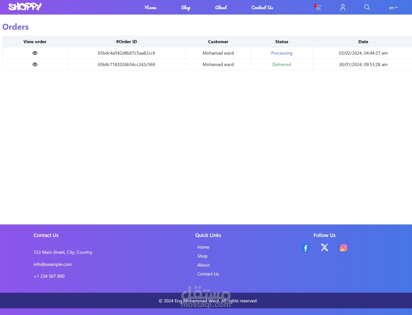 - صفحة التسوق تحوي كل المنتجات مرتبة حسب أحدث منج تم إضافته - وجود فلاتر للمنتجات و خاصية البحث و عرض المنتج بشكل تفصيلي