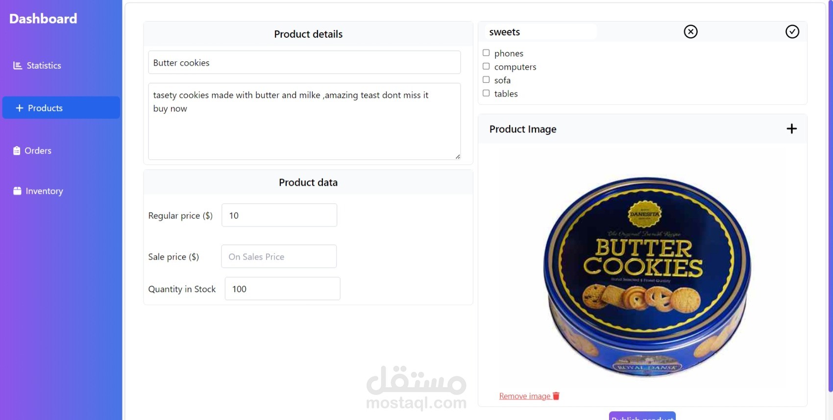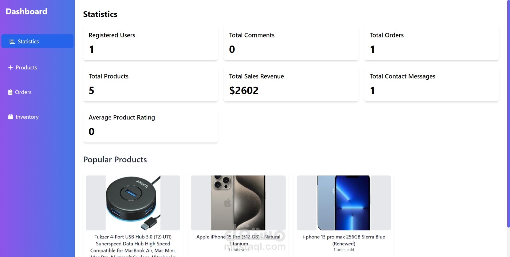- لوحة تحكم متكاملة تشمل احصائيات المتجر / ادارة المخزون / ادارة الطلبات /اضافة المنتجات /تعديل المنتجات/