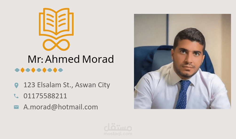 تصميم بطاقة هوية تحتوي بيانات شخصية لمدرس في مؤسسة تعليمية بشكل جذاب مع الاستعانة في إنشاء التصميم ببعض البرامج مثل canva, adop alestrator,