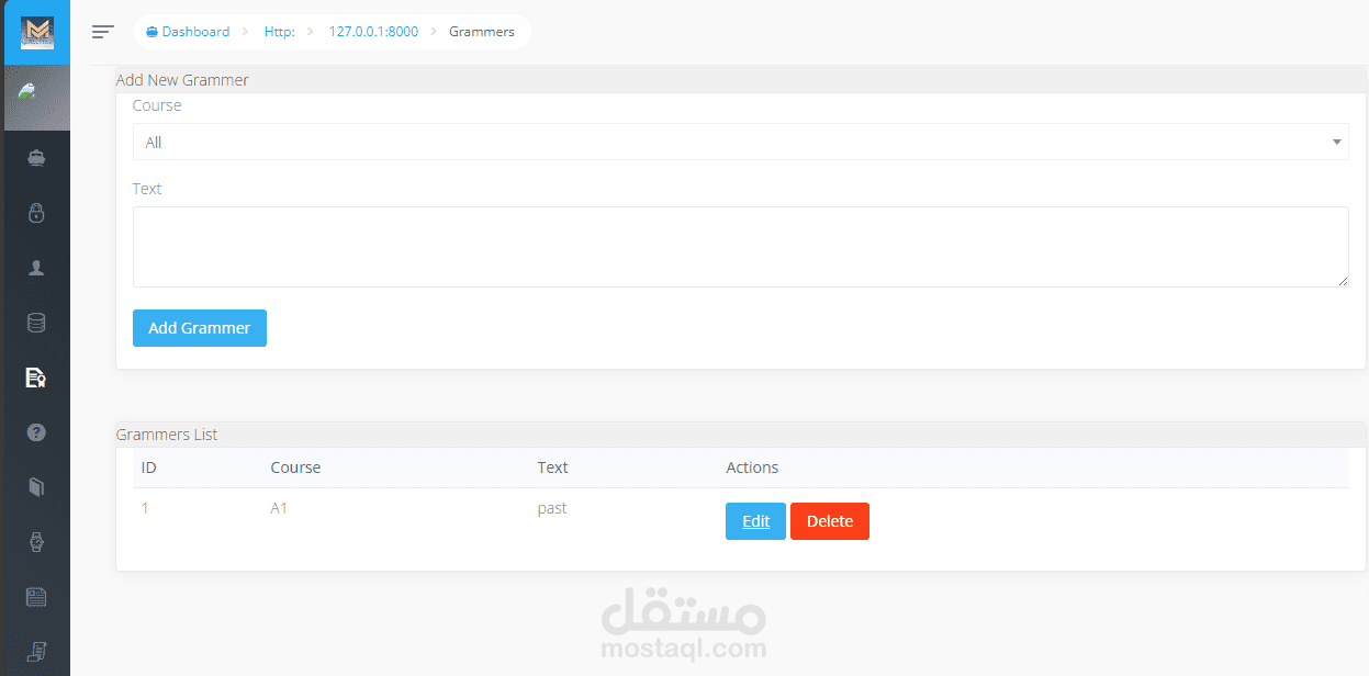 نظام لادارة معهد لغة انكليزية وتنظيم الطلاب ضمن كورسات وصلاحيات يمكنهم من تحميل الملفات الخاصة بكل كورس بالاضافة الى الاجابة عن اسئلة خاصة بكل قاعدة .