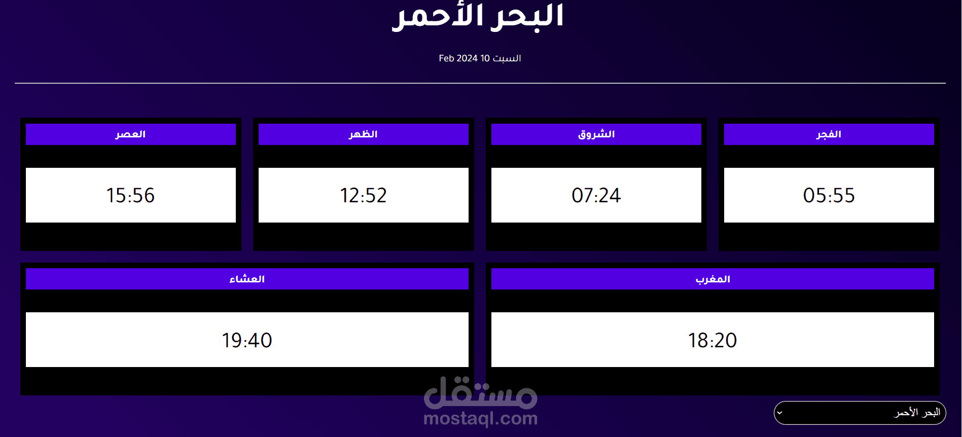 تصميم وبرمجة موقع لمعرفة مواعيد الصلاة بكل محافظات مصر