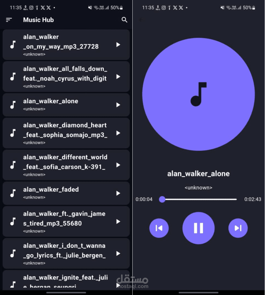 تطبيق لتشغيل المقاطع الصوتية والموسيقى