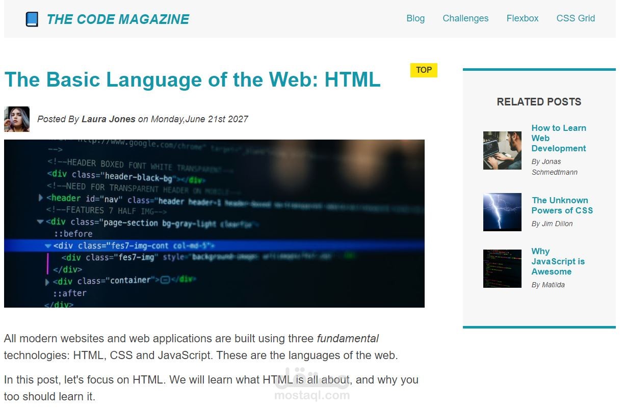 الموقع بسيط مكون من جزء رئيسي بالموقع و جزء جانبي . التنفيذ بالHTML و الCSS .