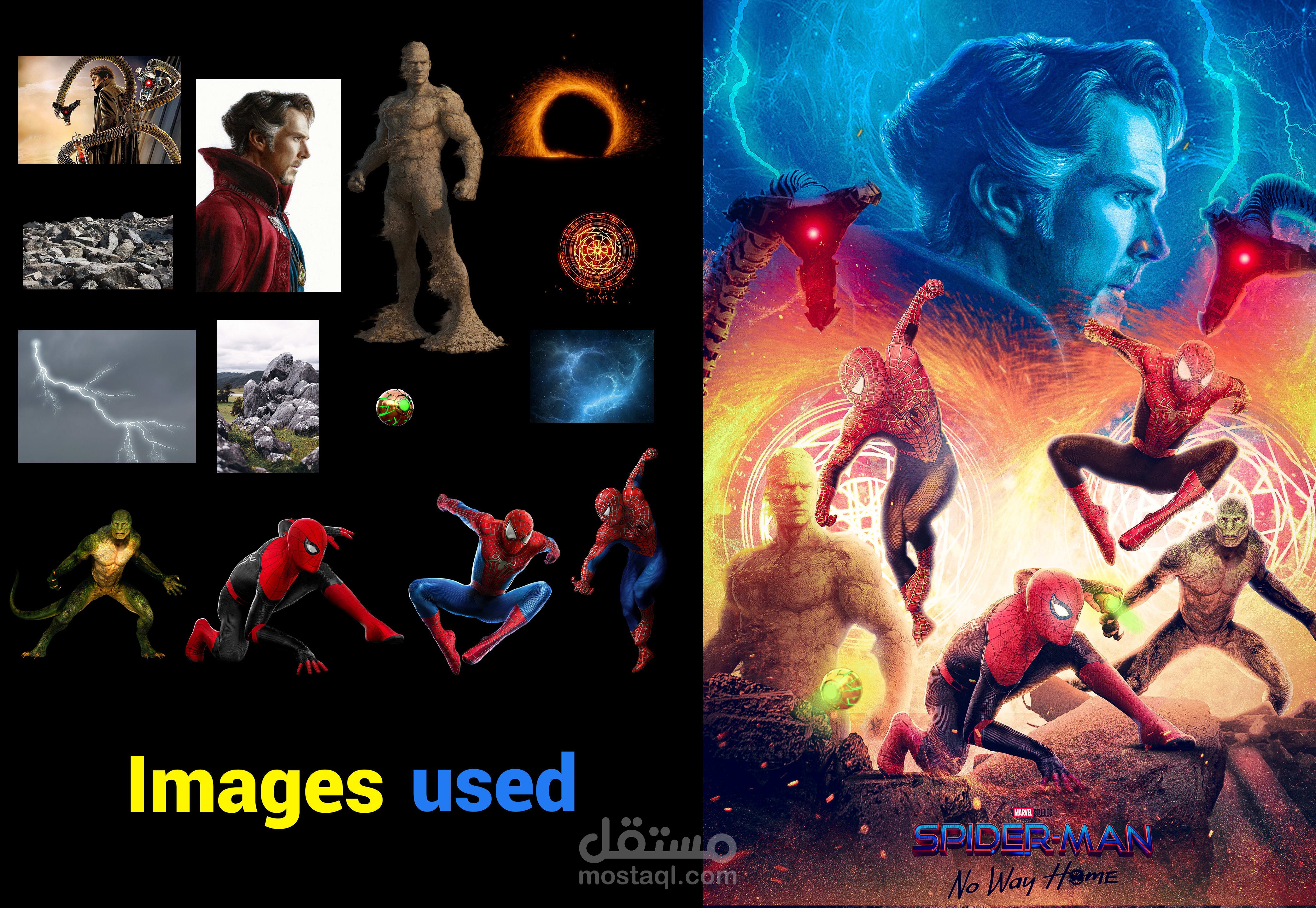 Advanced spiderman poster concept photo manipulation full of effects, color grading and movement