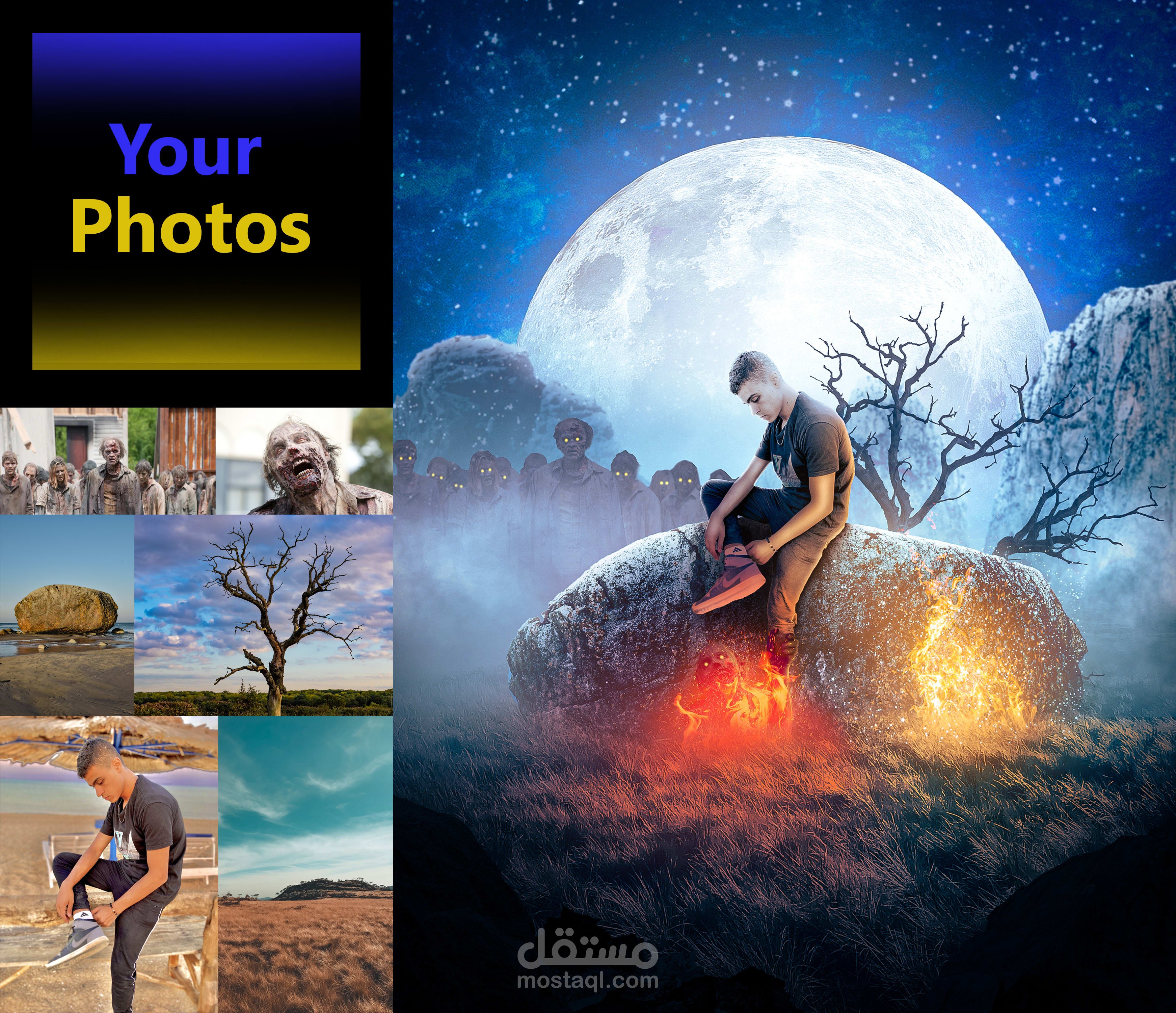Photoshop manipulation advanced with blue night theme and orange colour ( complementary colors ) full of quick and effective effects and bulky colours