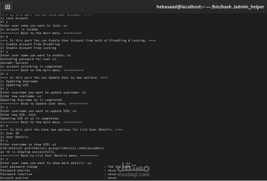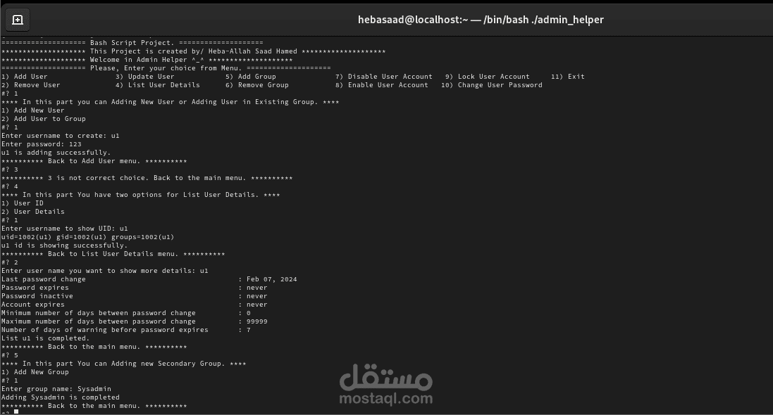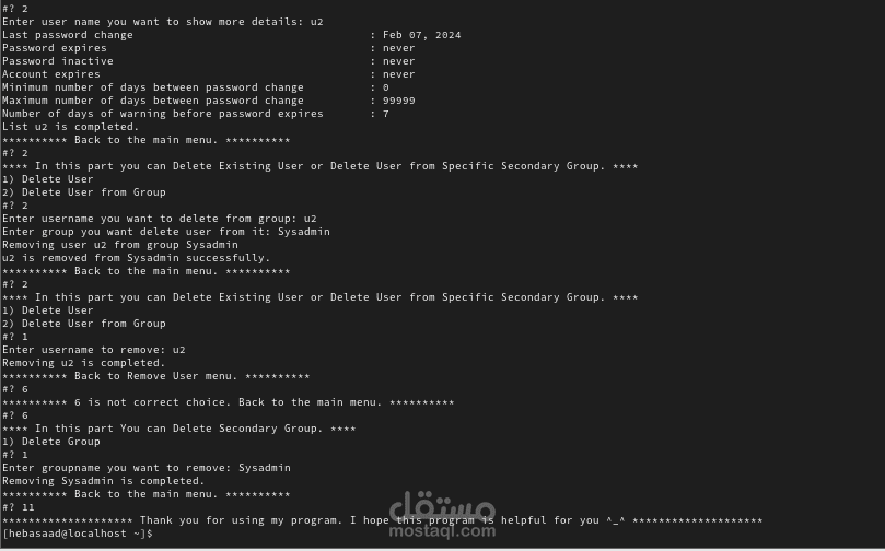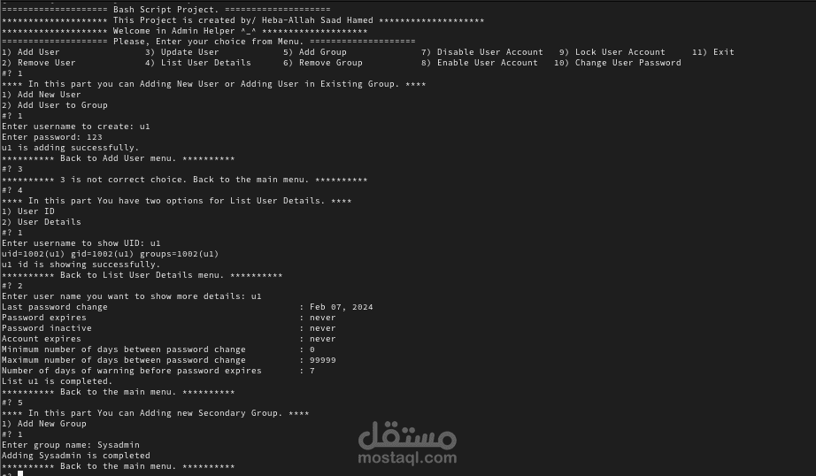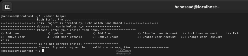 في هذا البرنامج استخدمت طريقة ال bash scripting في الكتابة بالاضافه الى select and case statement فقط
