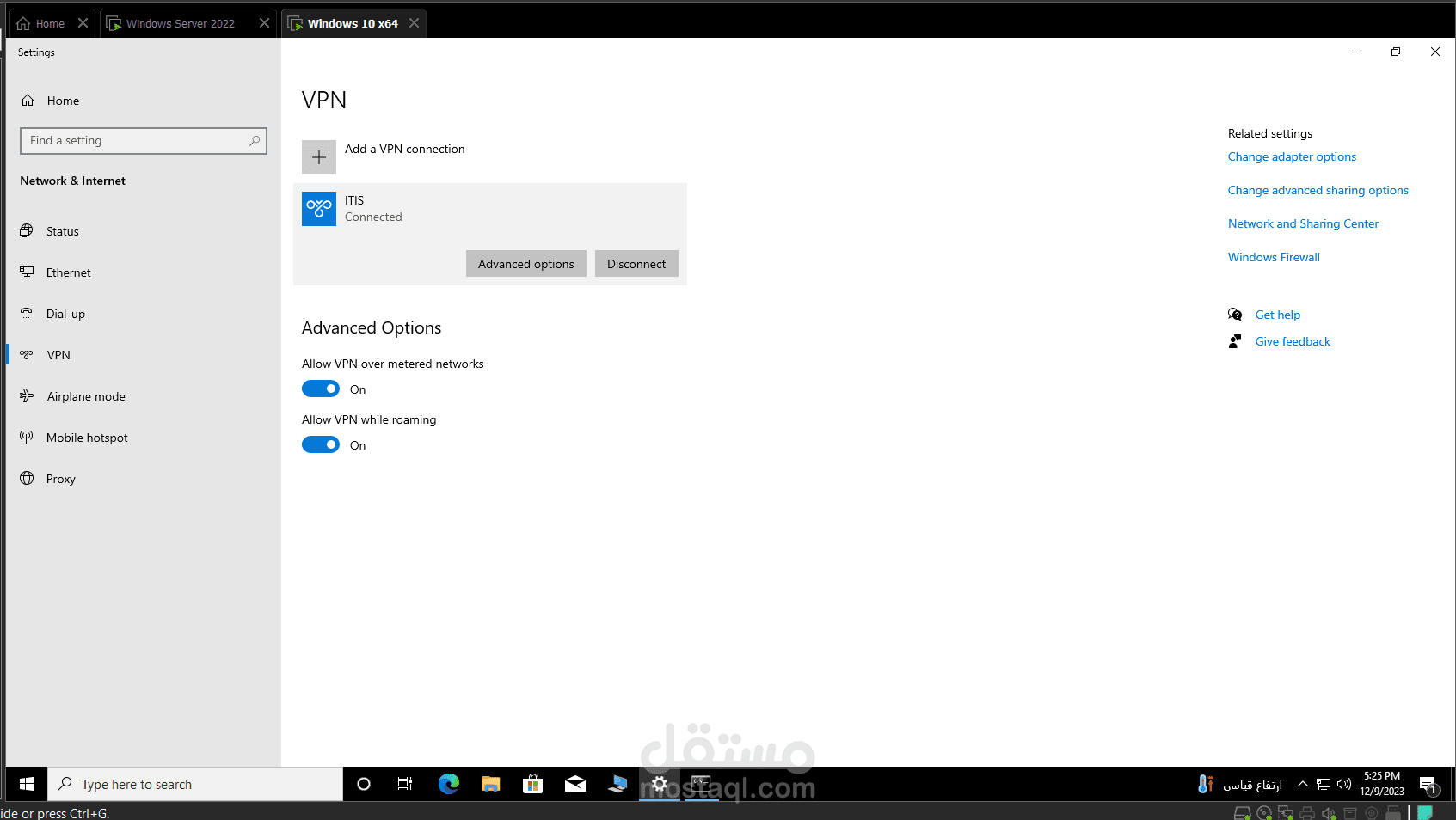 في هذا المشروع قمت بعمل VPN على windows server والذي من خلاله يمكن تأمين اتصالات الإنترنت وحماية البيانات الحساسة عبر شبكة غير آمنة مثل الإنترنت. وتعمل الـ VPN عن طريق إنشاء اتصال آمن ومشفر بين جهاز الكمبيوتر الخاص بك والخادم الذي تتصل به، سواء كان ذلك خادم الشركة أو خادم VPN الخاص بمزود خدمة الإنترنت.