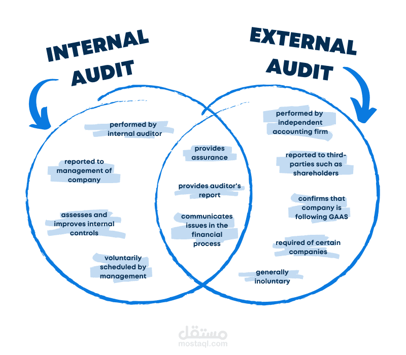 While the independent audit is regarded as an examination that evaluates the financial statements conducted by an external auditor, in preparation for providing the stakeholders, such as shareholders and creditors, with the necessary knowledge regarding the financial reporting transparency, internal audit, on the other hand, comes to complement shortfalls, trying to maintain the risk management effectiveness and governance processes integrity, which means that internal auditors are responsible for conducting an operational review, identifying areas for improvement, and providing recommendations to develop the internal controls (Green et al., 2011).