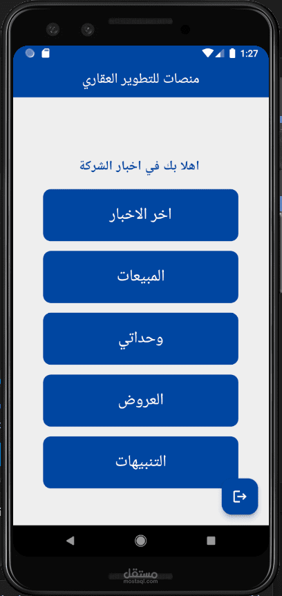 ذلك التطبيق عبارة عن demo لشركة عقارية يوجد به بيانات الوحدات و عروض على الوحدات فيلا او مول على حسب نوع المشروع والدفع والاقساط واخبار