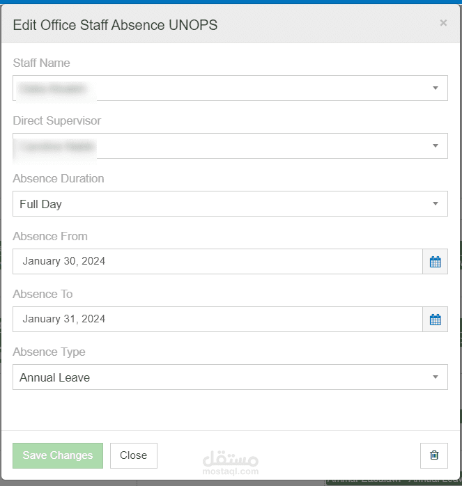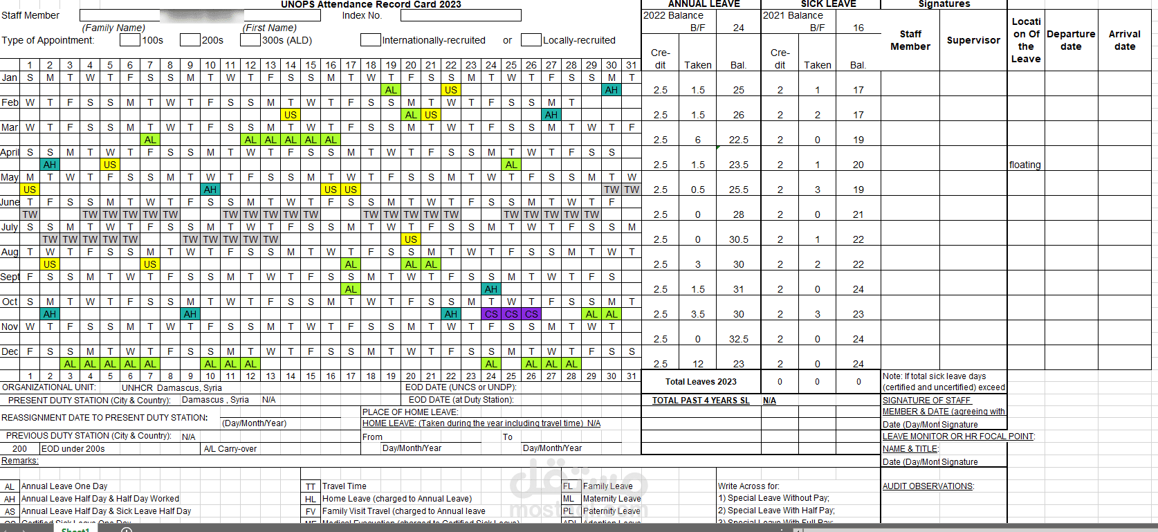 1. إدارة الإجازات المركزية: تبسيط إدارة غياب موظفي مكتب الأمم المتحدة لخدمات المشاريع في سوريا.