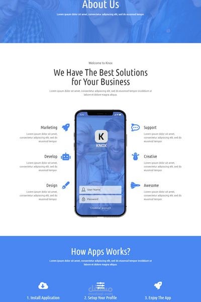 KNOX is designed for apps, landing page, startup, corporate, company, businesses or any type of person or business who wants to showcase their work, services and professional way.