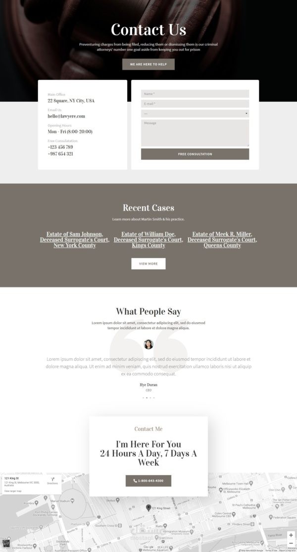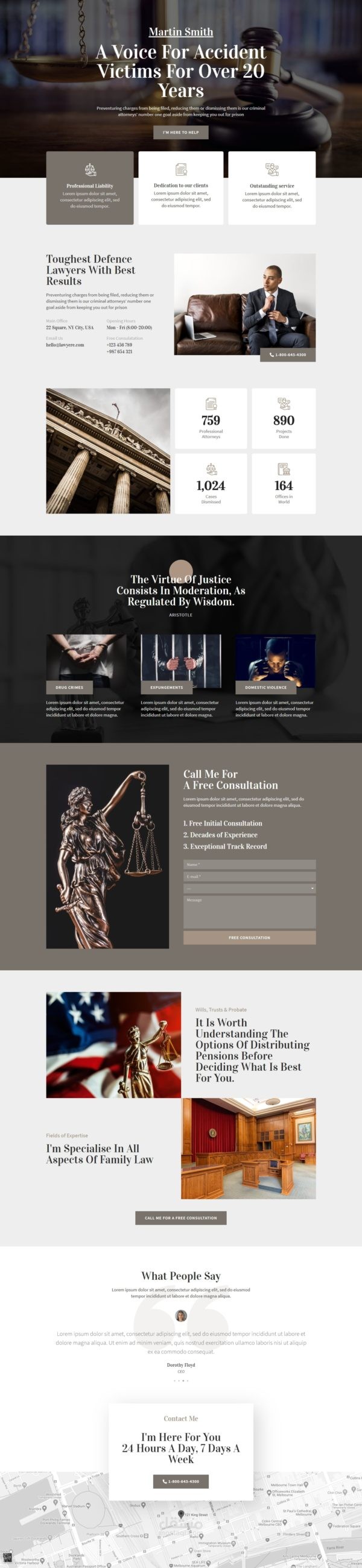 Lawyere is a Elementor Templates for law, law firm, law office, lawyer, attorney, legal practitioners, barrister, solicitor but works great also for business consultants and financial advisers. This kit is built having in mind profiles of these companies and individuals and their needs, presentation wise.