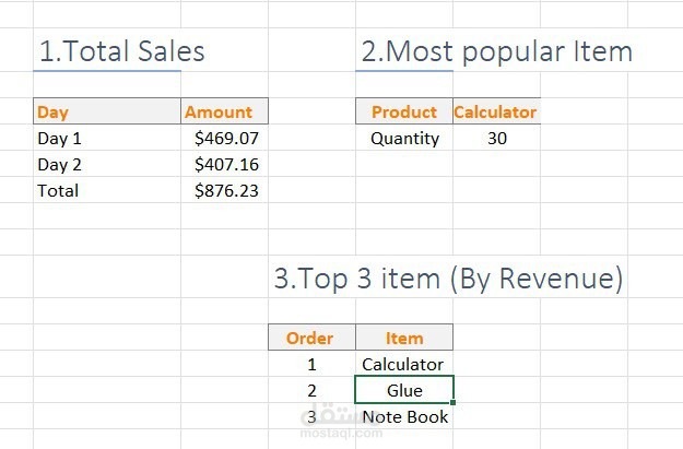 اعداد ملف اكسيل بسيط لعرض مبيعات مكتبة في يومين.