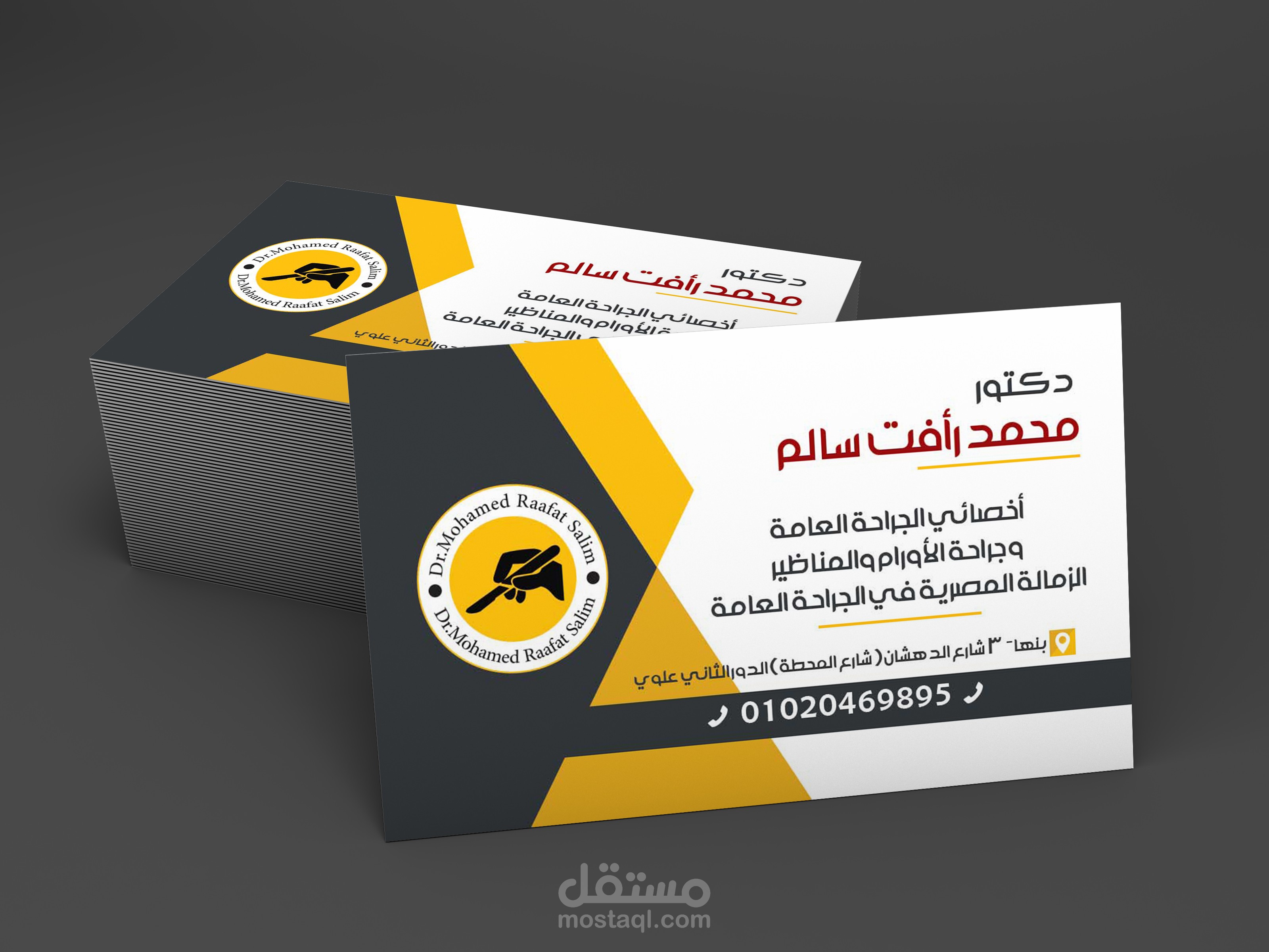 كارت شخصى مقاس 9*5.5 على ورق كوشيه 300 جرام عليه سلوفان مط