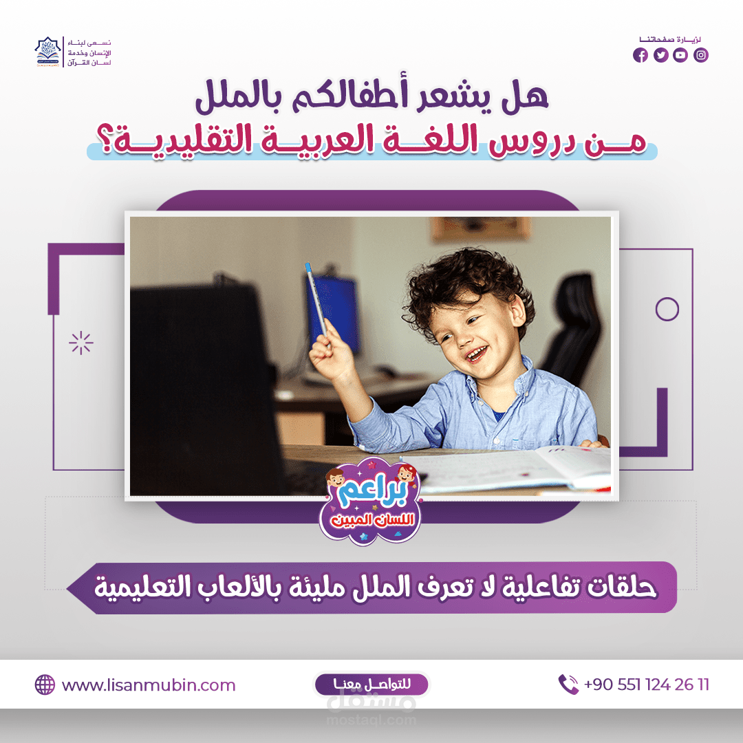 تصميم إعلان لمؤسسة اللسان المبين