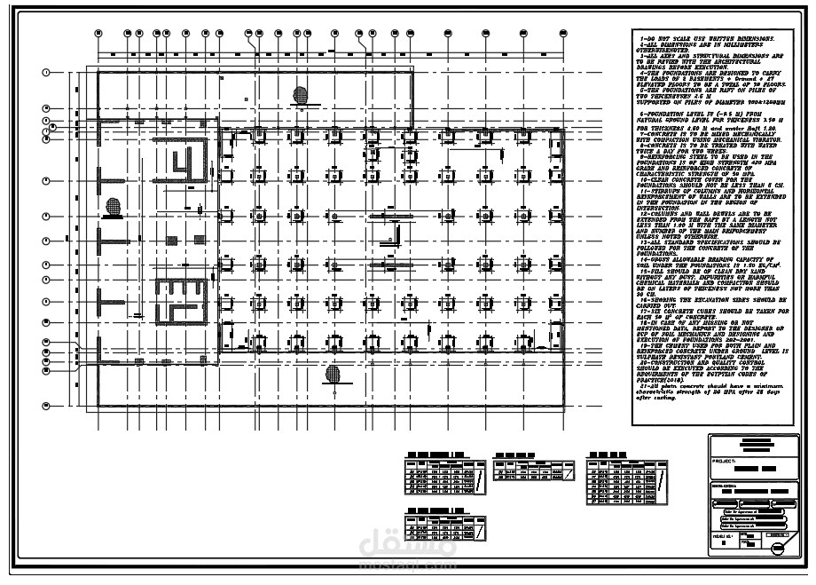 كافة اللوحات الإنشائية للقواعد والاعمدة والبلاطات وحوائط القص