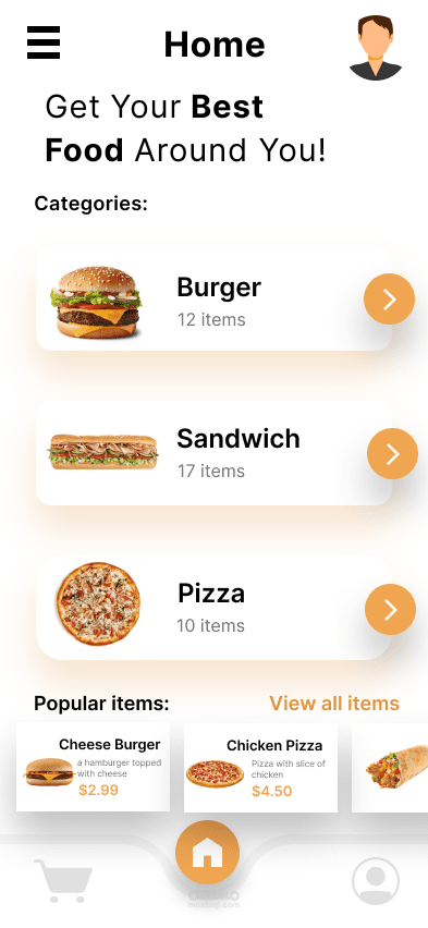 تطبيق لطلب الوجبات السريعة: لقد صممت واجهة المستخدم الخاصة بالتطبيق باستخدام Figma ثم قمت بتحويله إلى تطبيق Flutter باستخدام إدارة الحالة (Provider) والرسوم المتحركة لجعل التطبيق سلسًا للغاية في استخدامه.