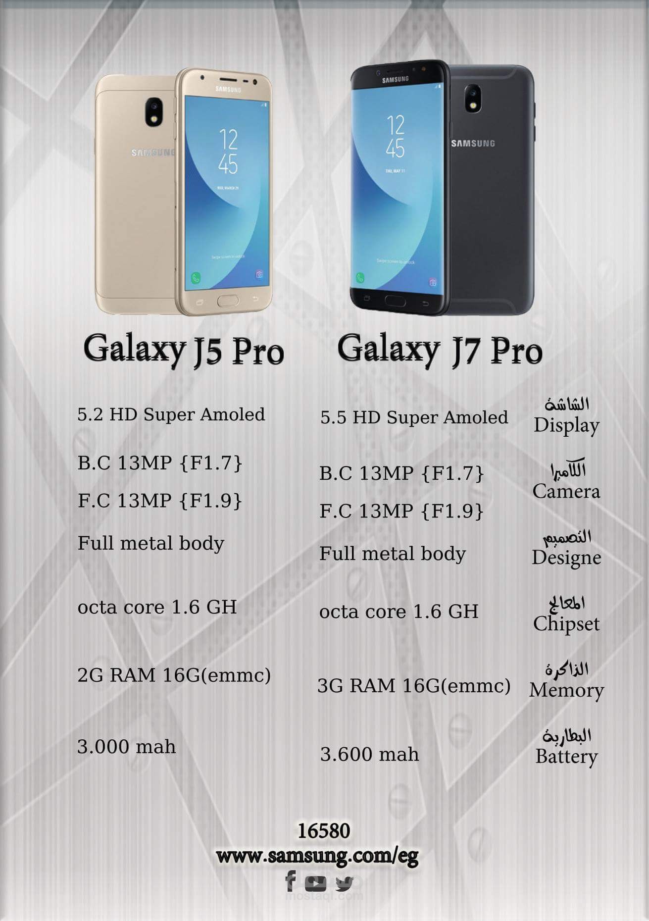 Flyer Samsung galaxy j pro يوضح فيه الفرق فى إمكانيات كل ڤيرجن من j7 & j5