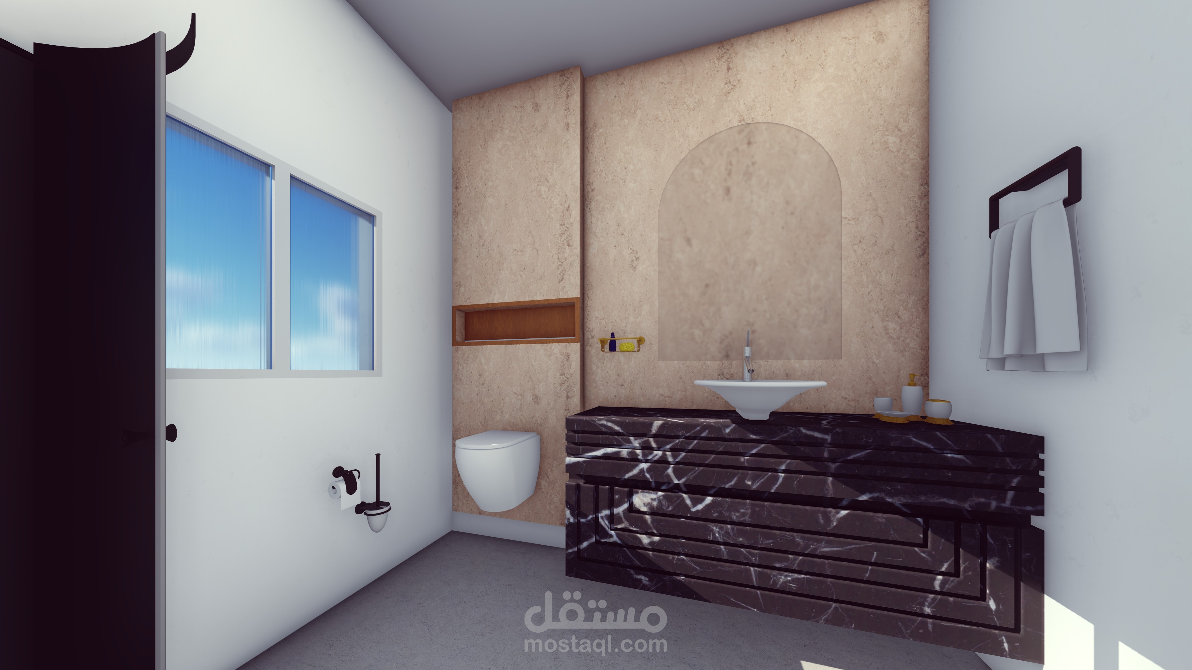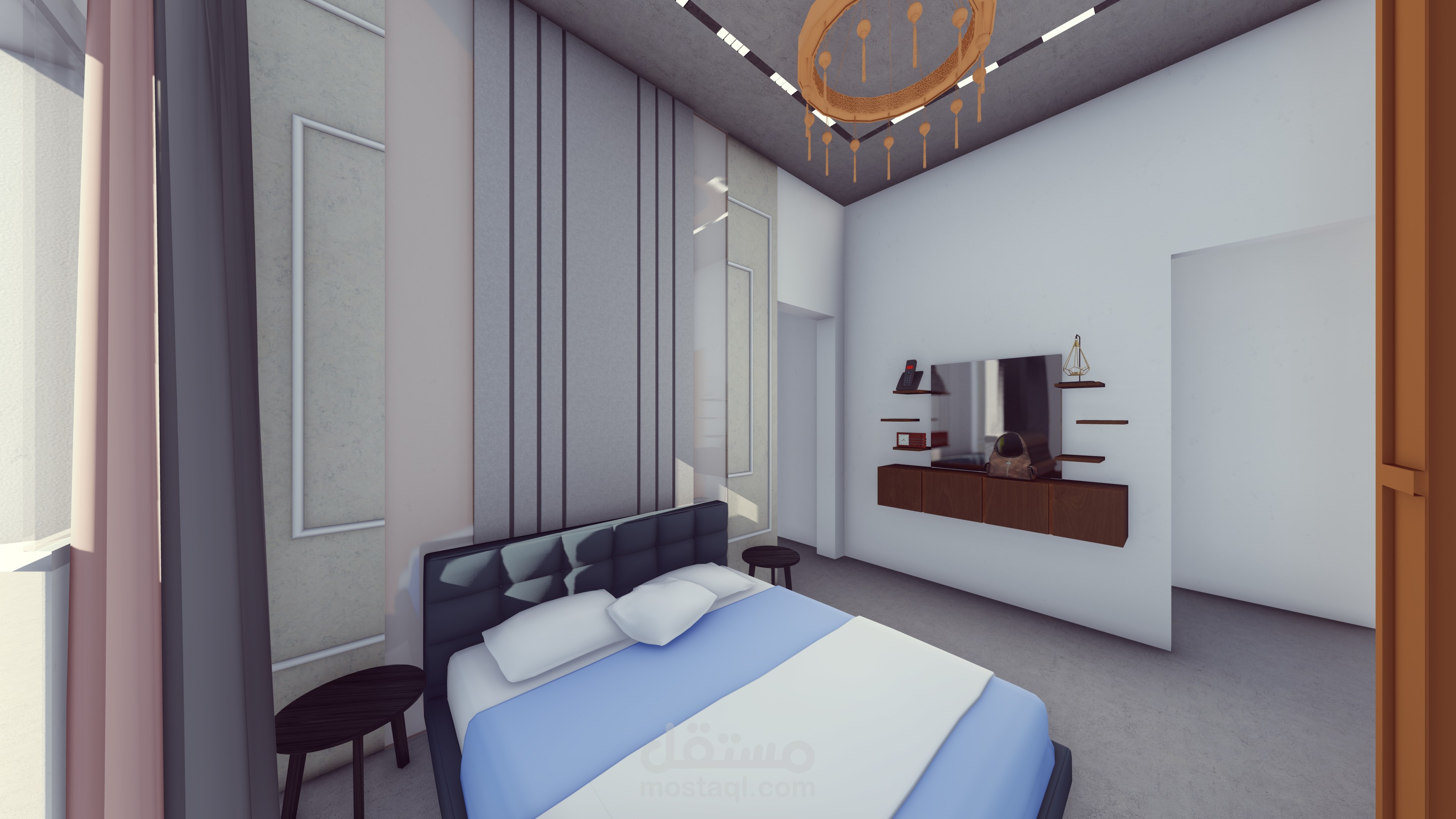 تصميم مودرين غرفة نوم مع حمام خاص بها