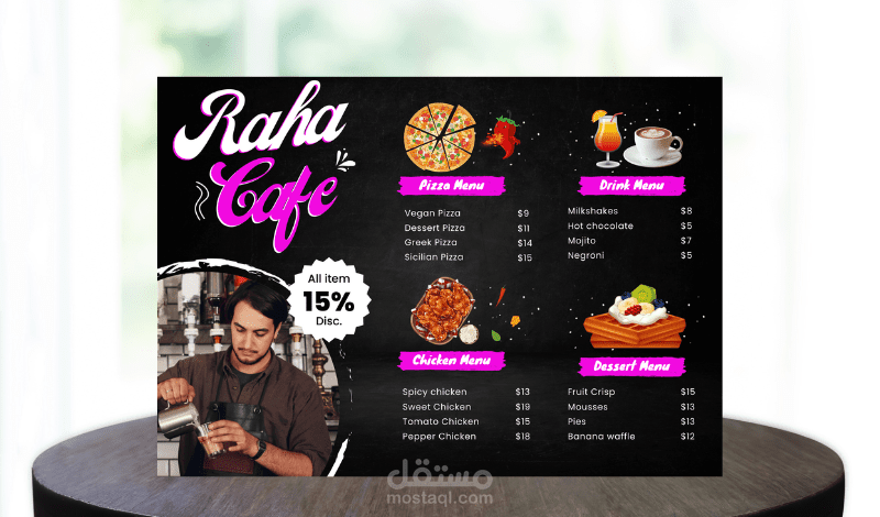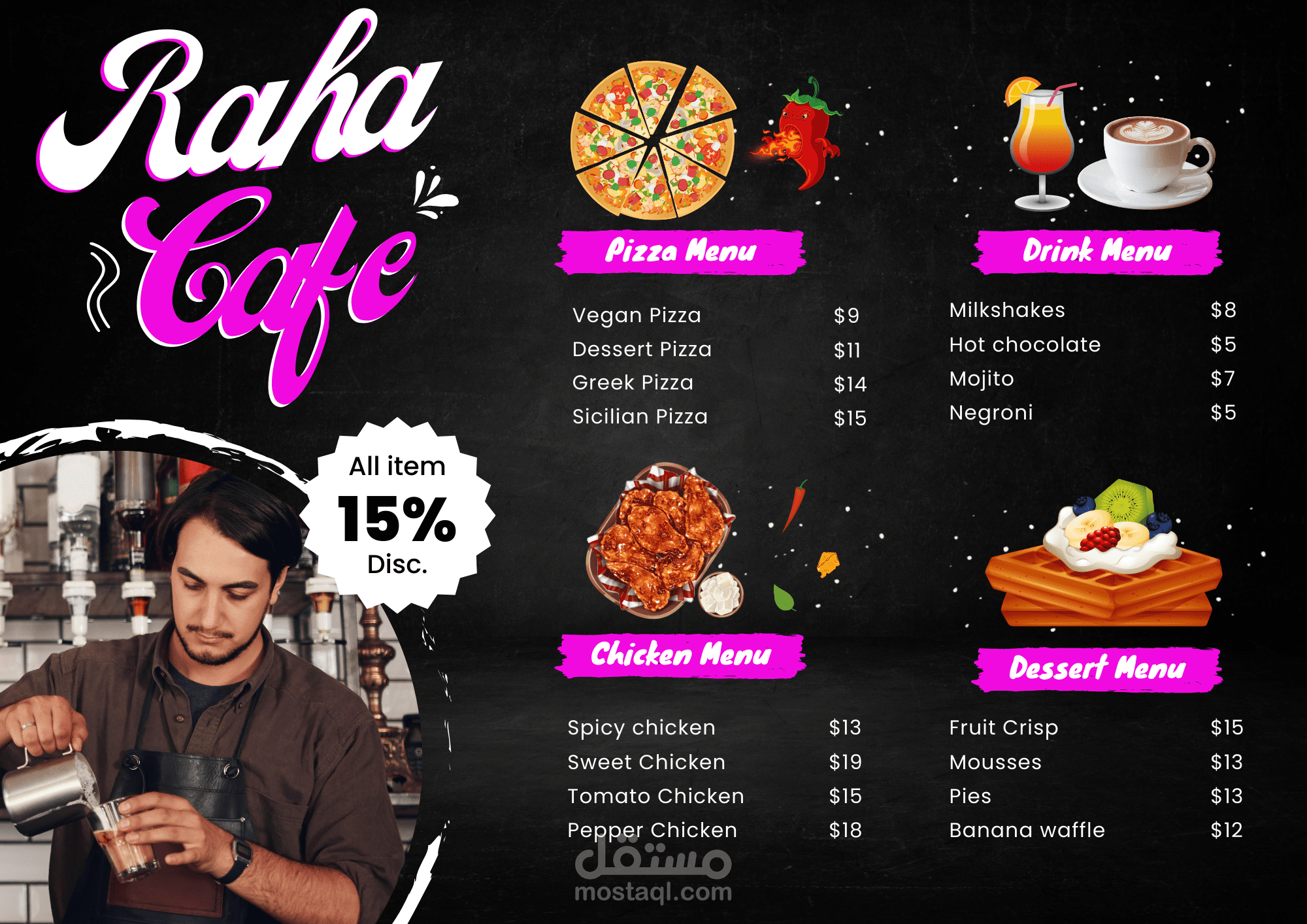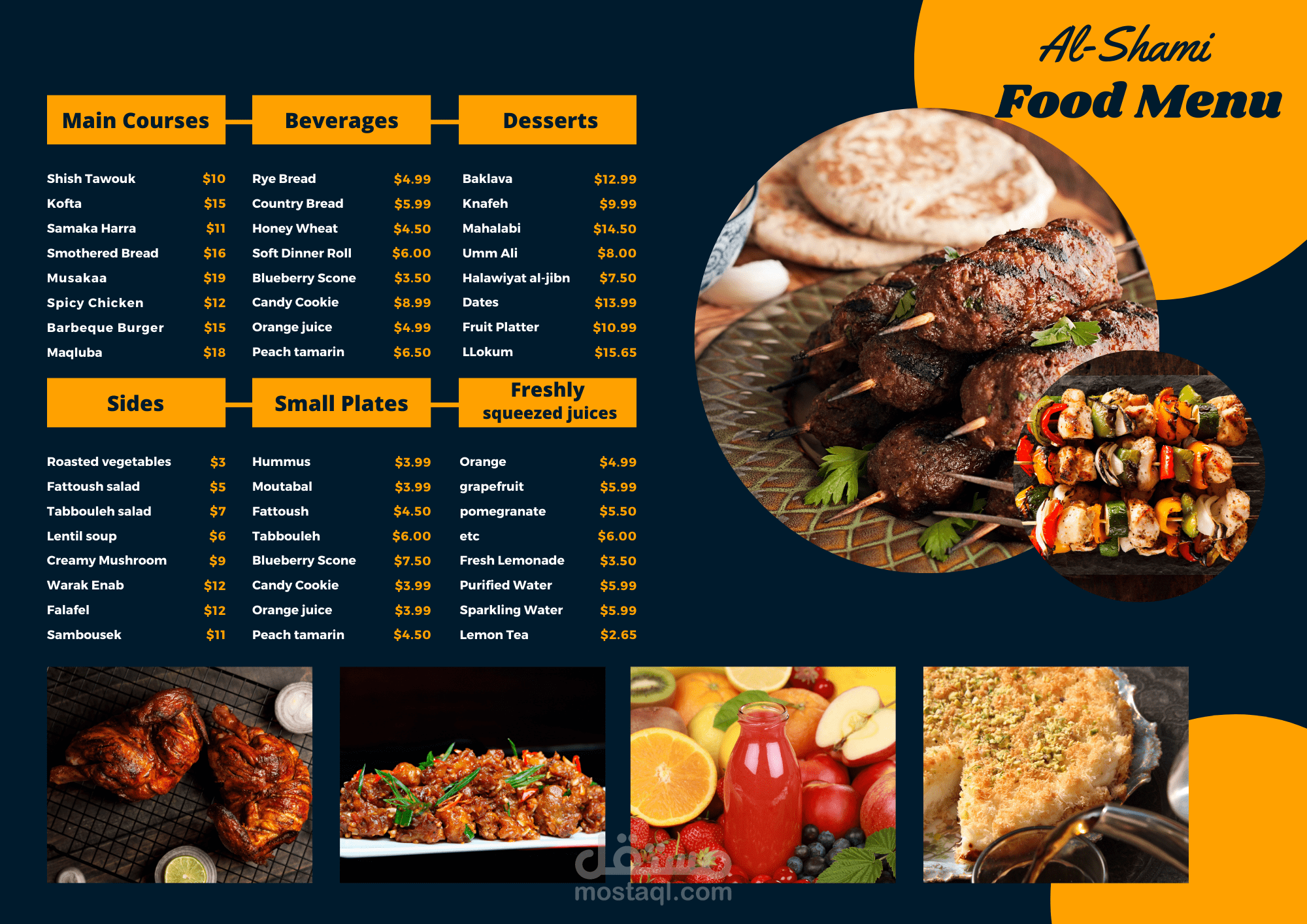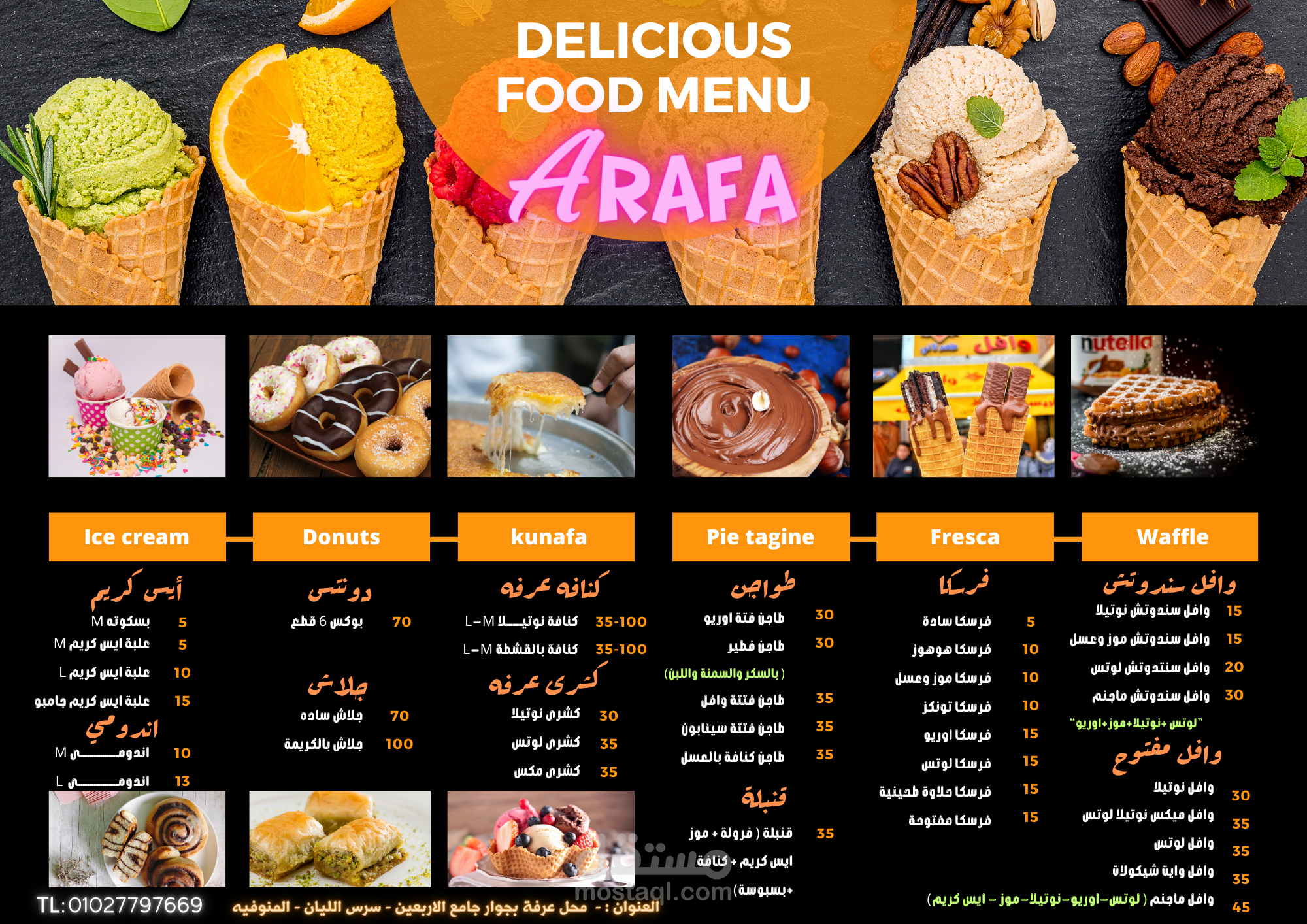 سوف أساعدك في تقديم منيو menu- قائمة طعام- دقيقة و منسقة لنجاح مشروعك .