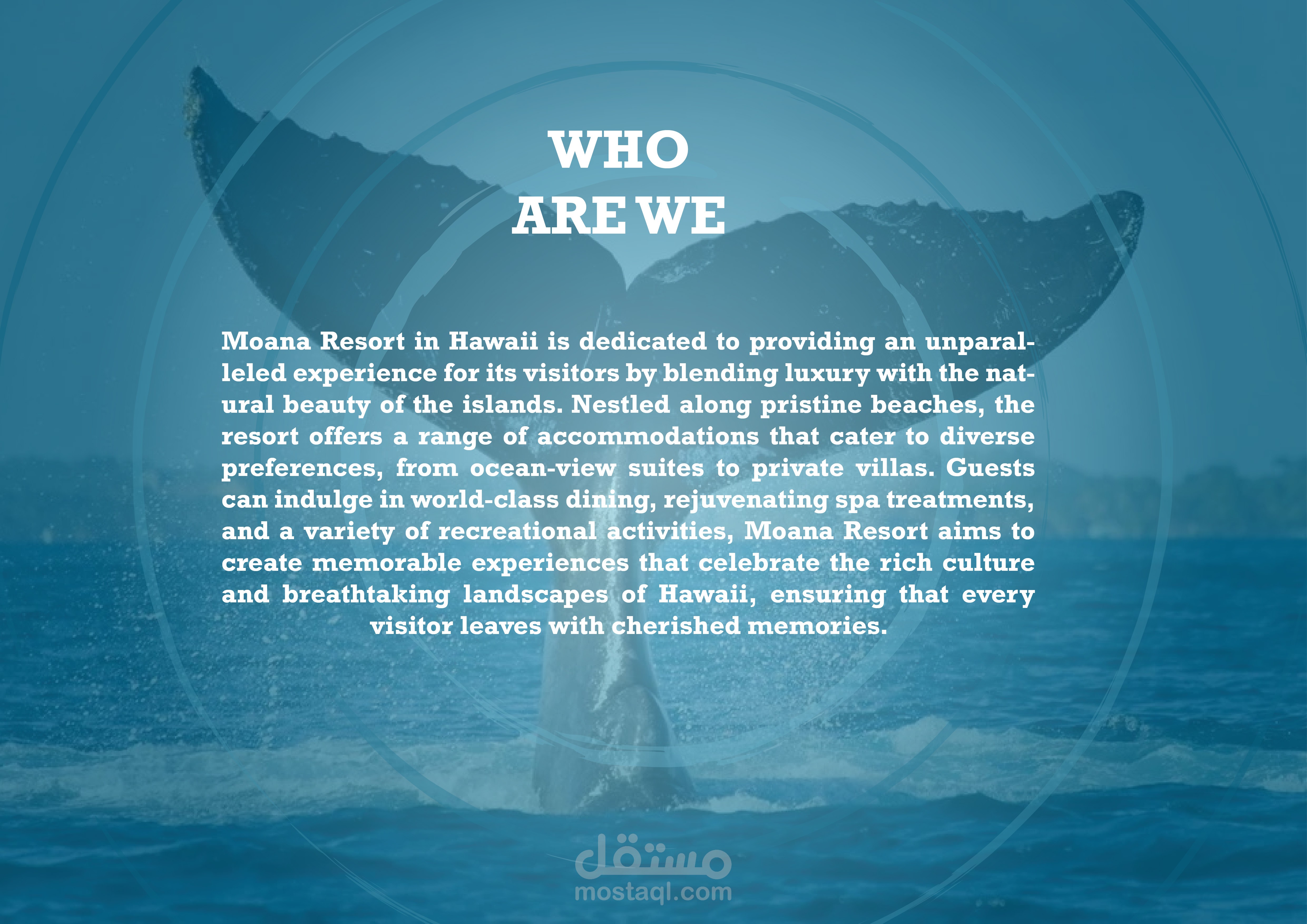 هذا المشروع كان احد مشاريعي في الجامعة حيث كان عليا تصميم هوية بصرية كاملة لمؤسسة تبث بروح بلد معينة و لهذه الهوية مزجت شكل ذيل حوت الاوكرا و حرف ال M و شكل امواج البحار لتكوين شعار مناسب و جذاب ولكن بسيط و سهل التعرف عليه و صممت بقية الهوية البصرية لتعكس هوية و روح هاواي و ما تشتهر بي مع استخدام درجات اللون الازرق للتعبير عن البحر.