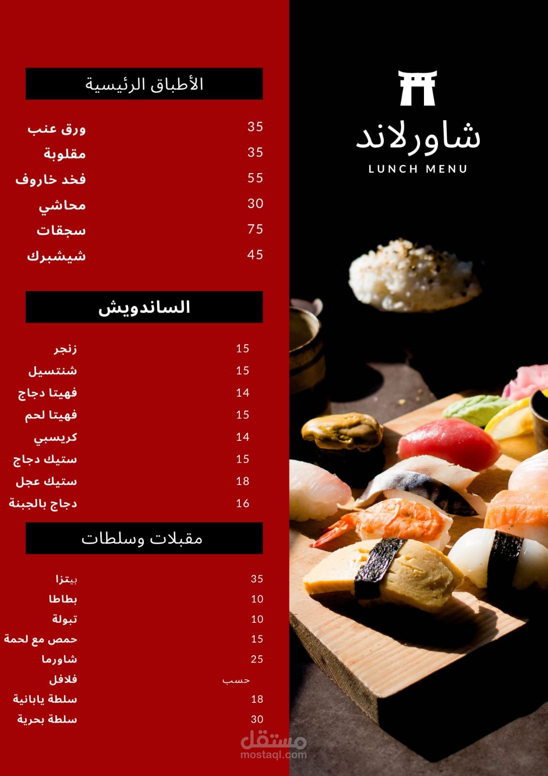 منيو لاحد المطاعم