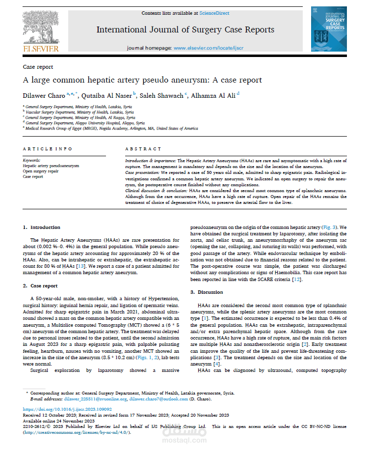 A rare case report was published in the " International Journal of Surgery Case reports" under the title " A common Hepatic Artery Pseudoaneurysm: A case report."