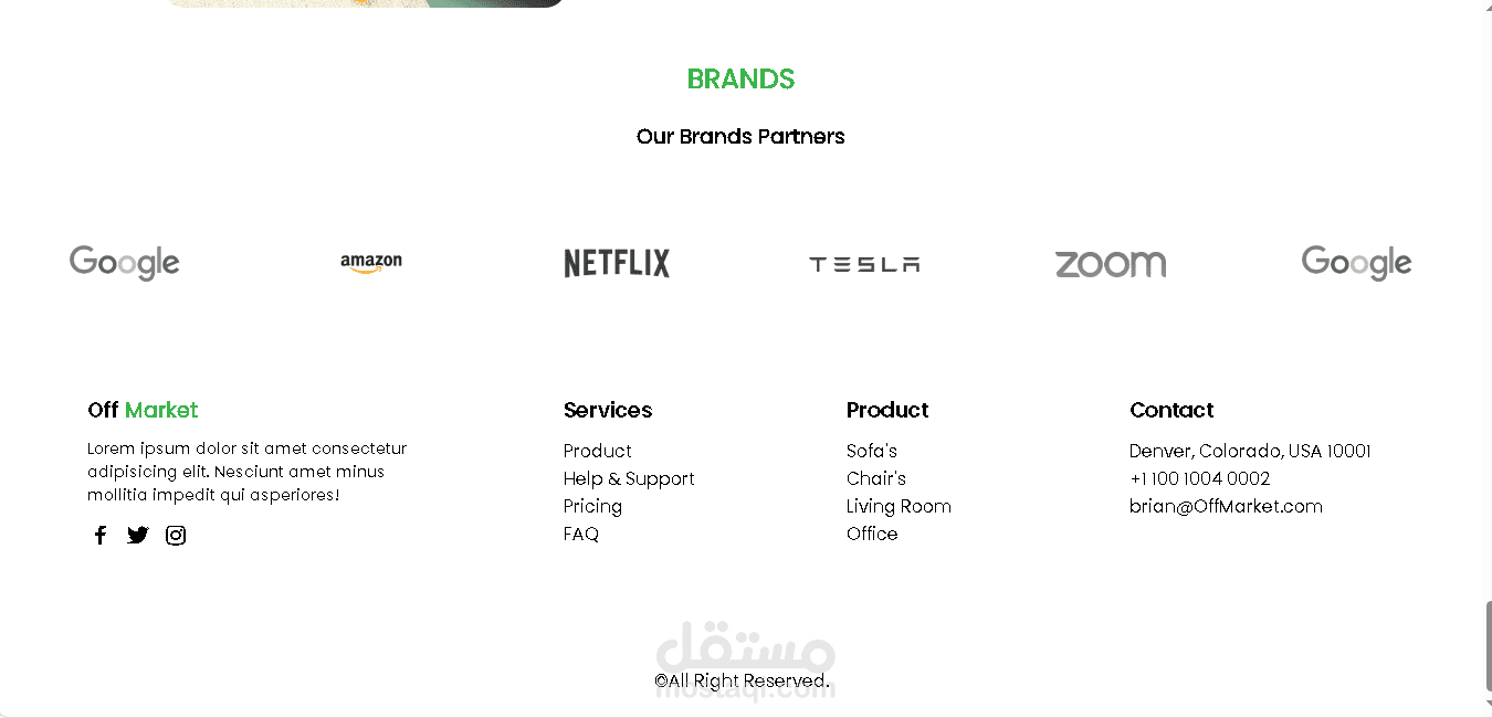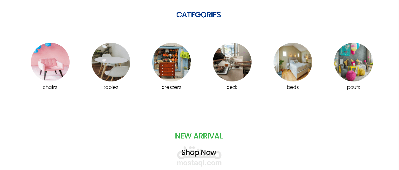 وجهة لموقع تجاري للاثاث فيه عرض المنتاجات واقسامها