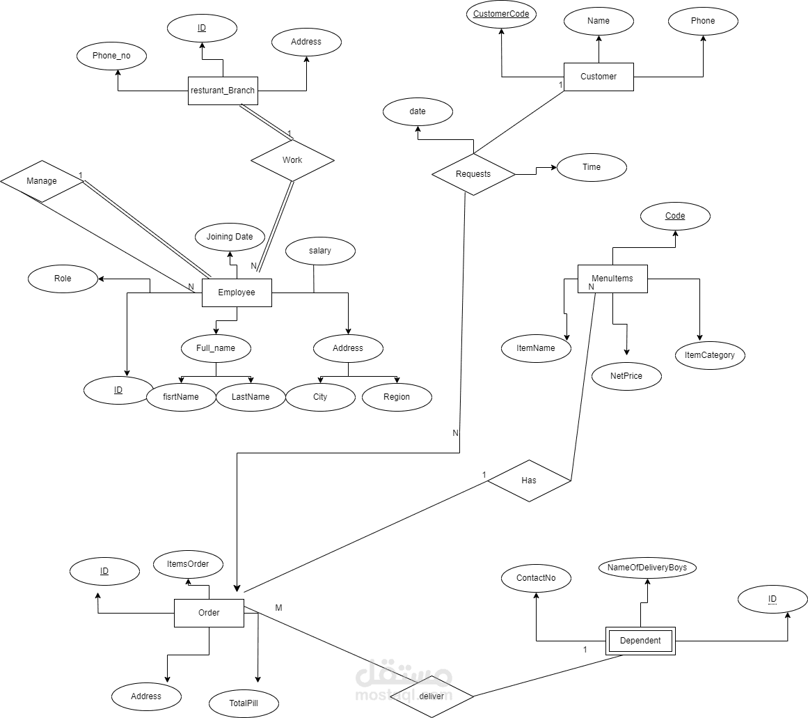 ERD for Restaurant system