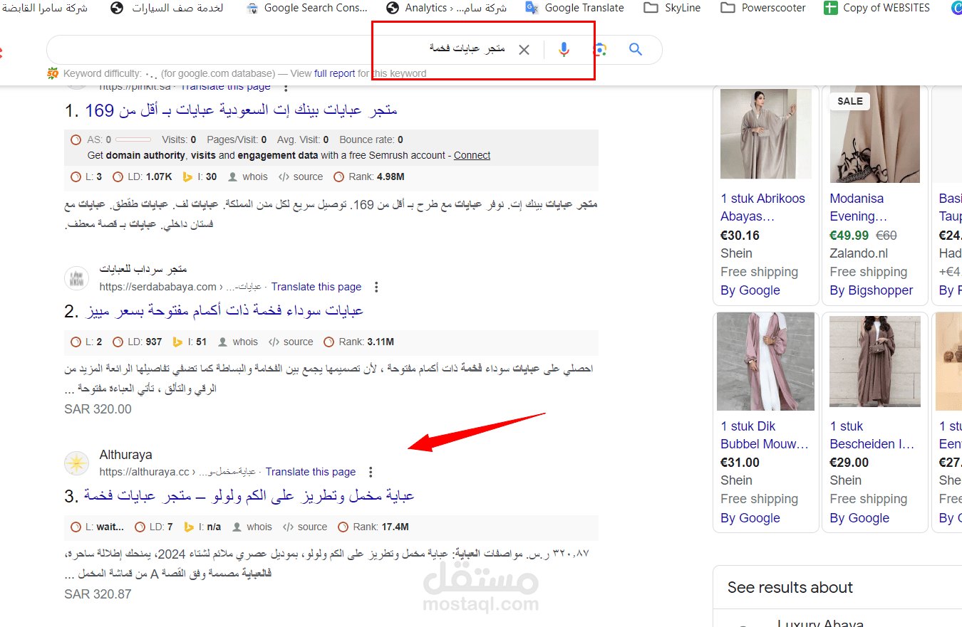 متجر مختص بالعبايات، تم العمل معه لحد الآن لمدة شهرين، وكانت النتائج كالتالي: