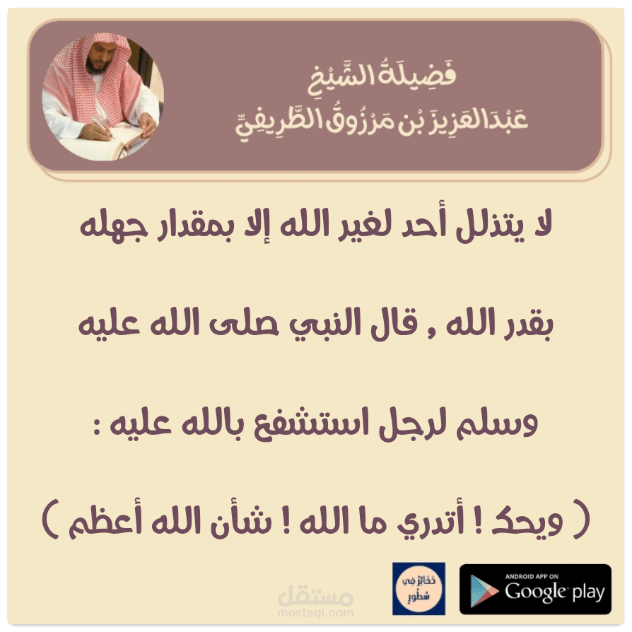 استكشف عبق التراث الإسلامي وجواهر الفكر مع تطبيق "ذخائر في سطور"، حيث نُقدم لك تجميعة فريدة من فرائد الشيخ عبدالعزيز الطريفي، مستلة من مدونات كتابية وصوتية متنوعة. هذه الأعمال، المتفردة في معانيها ومتباينة في أساليبها، قد تم جمعها بعناية في كتاب "ذاكر في سطور". بمشاركة بعض الأحبة، بذلنا جهدًا كبيرًا لنحول هذه الكنوز إلى تطبيق يُسهل نشر تعاليم الشيخ بأسلوب عصري ومبتكر عبر وسائل التواصل الاجتماعي. انضم إلينا في رحلة إثراء الوعي وتوسيع آفاق المعرفة.