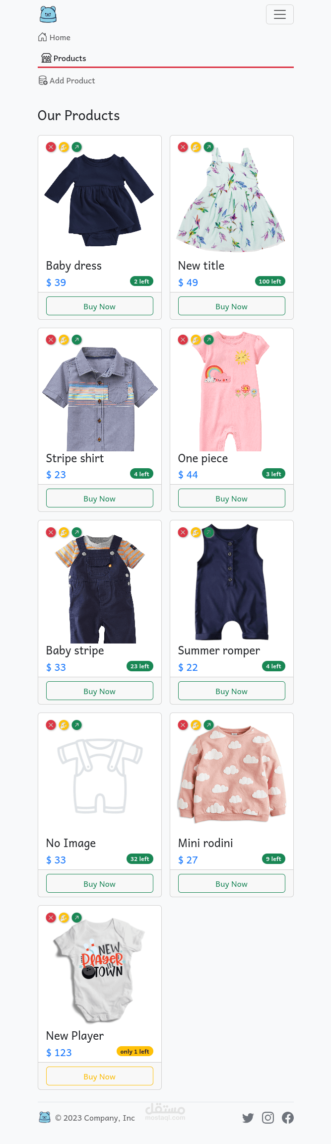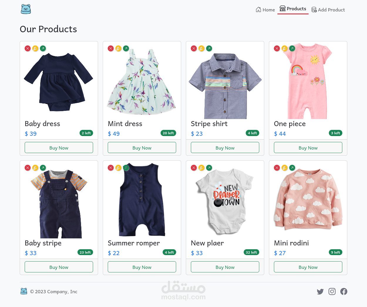 موقع خاص بمشروع بيع ملابس اطفال مع واجهة خاصة بمدير الموقع يستطيع من خلالها اضافة منتجات او تعديلها او ازالتها من خلال تجربة فريدة من نوعها للمستخدم ولأدارة الموقع.