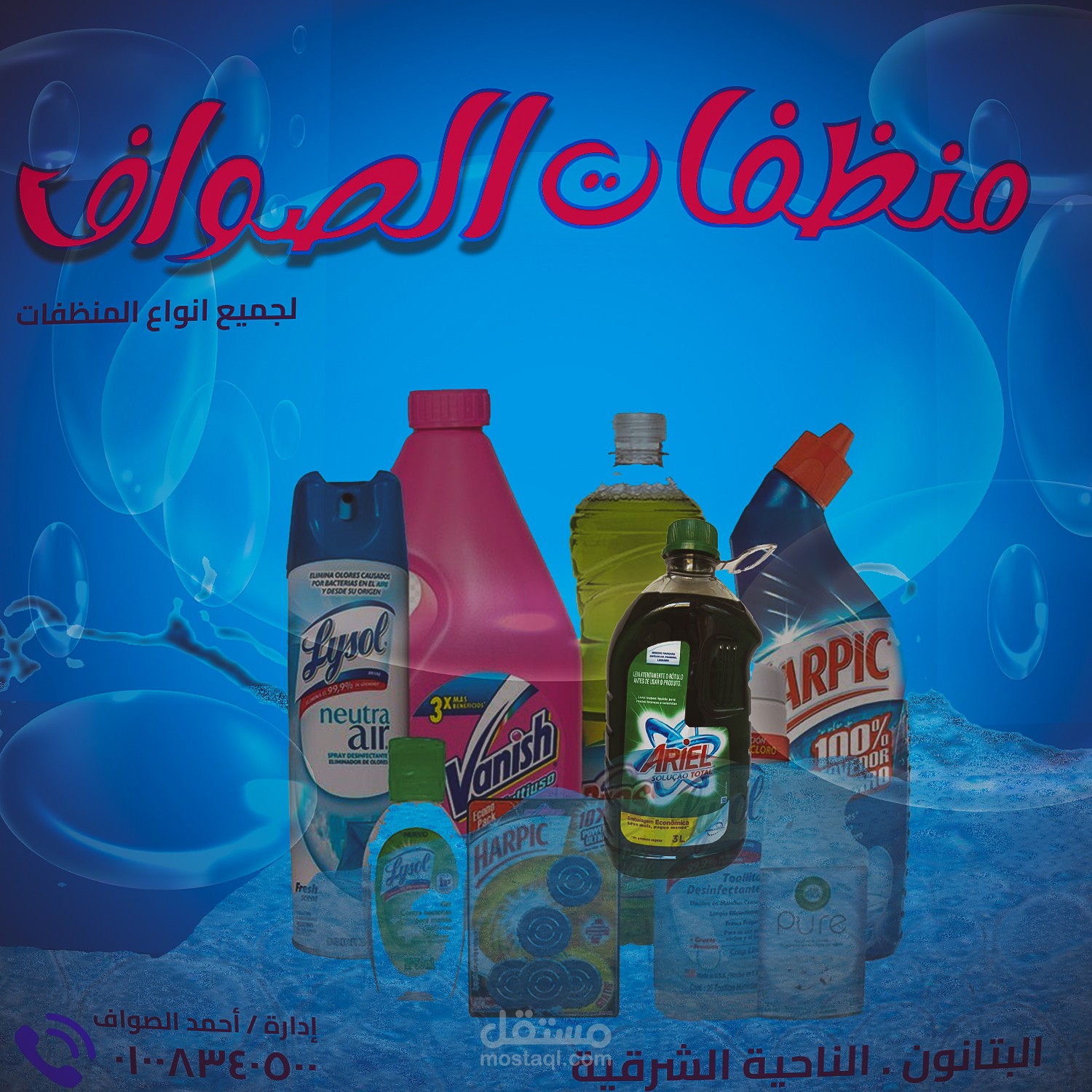 تصميم دعائى لمحل بيع جميع انواع المنظفات
