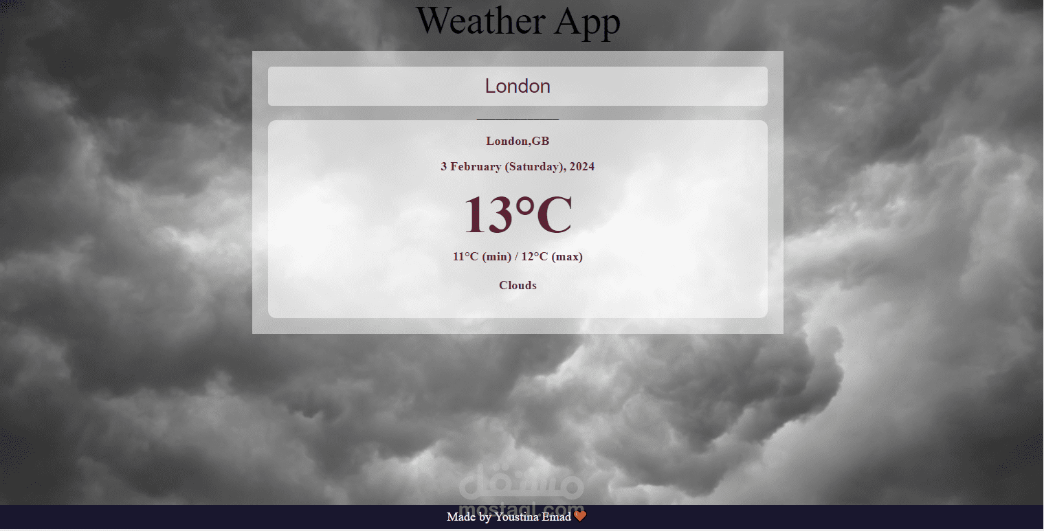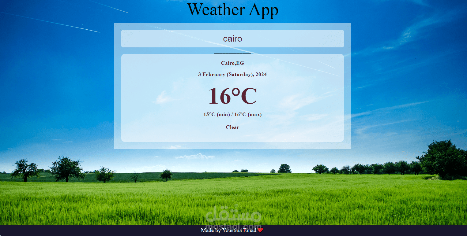 لقد قمت بعمل تطبيق يقوم بتوقع الطقس عندما تقوم بادخال اسم دولة اليه وتم تنفيذه باستخدام HTML , CSS , JQuery .