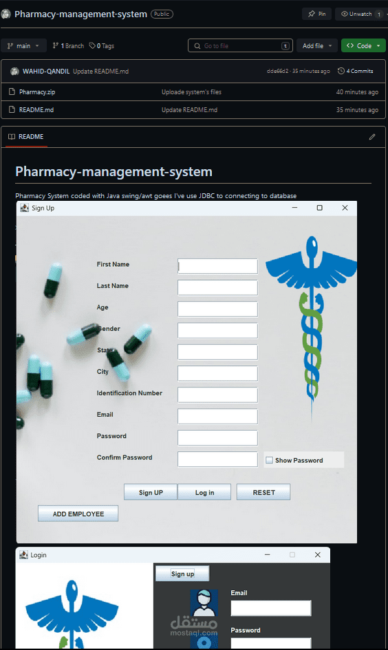 Pharmacy System coded with Java swing/awt goees I've used JDBC to connecting to database