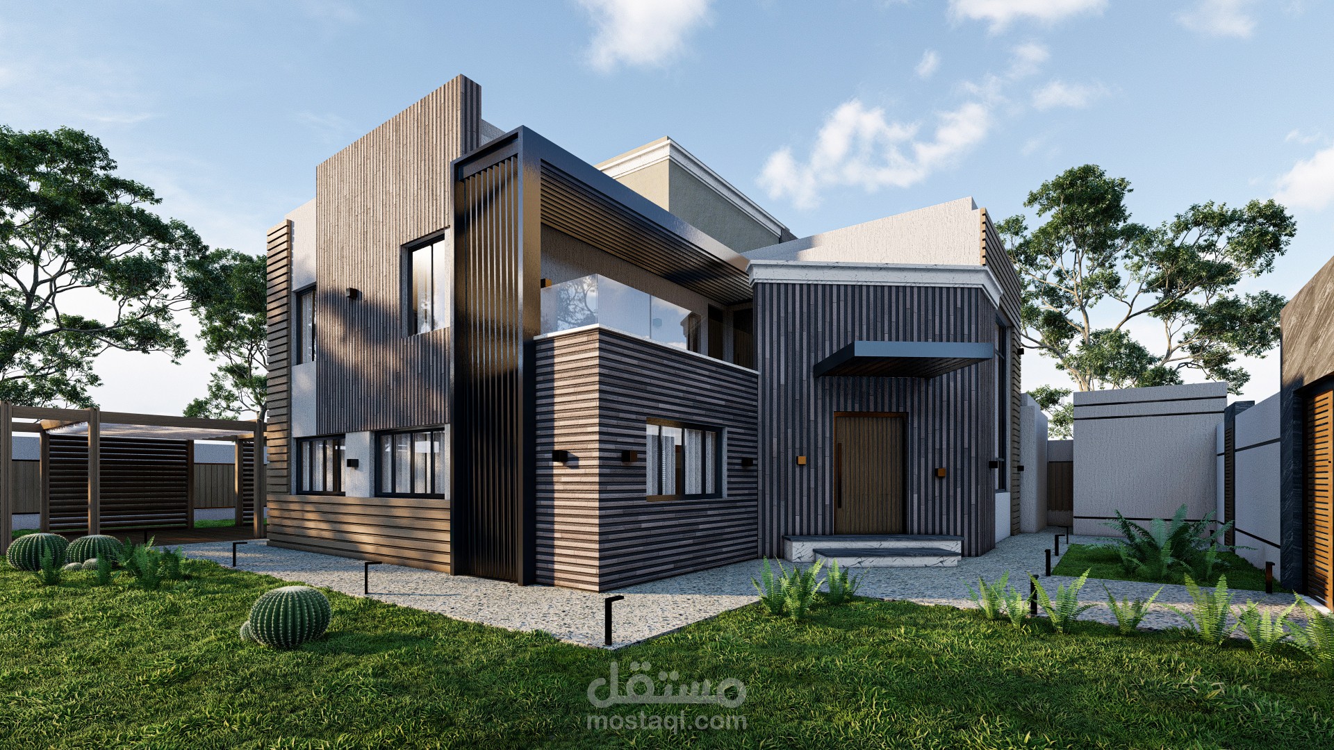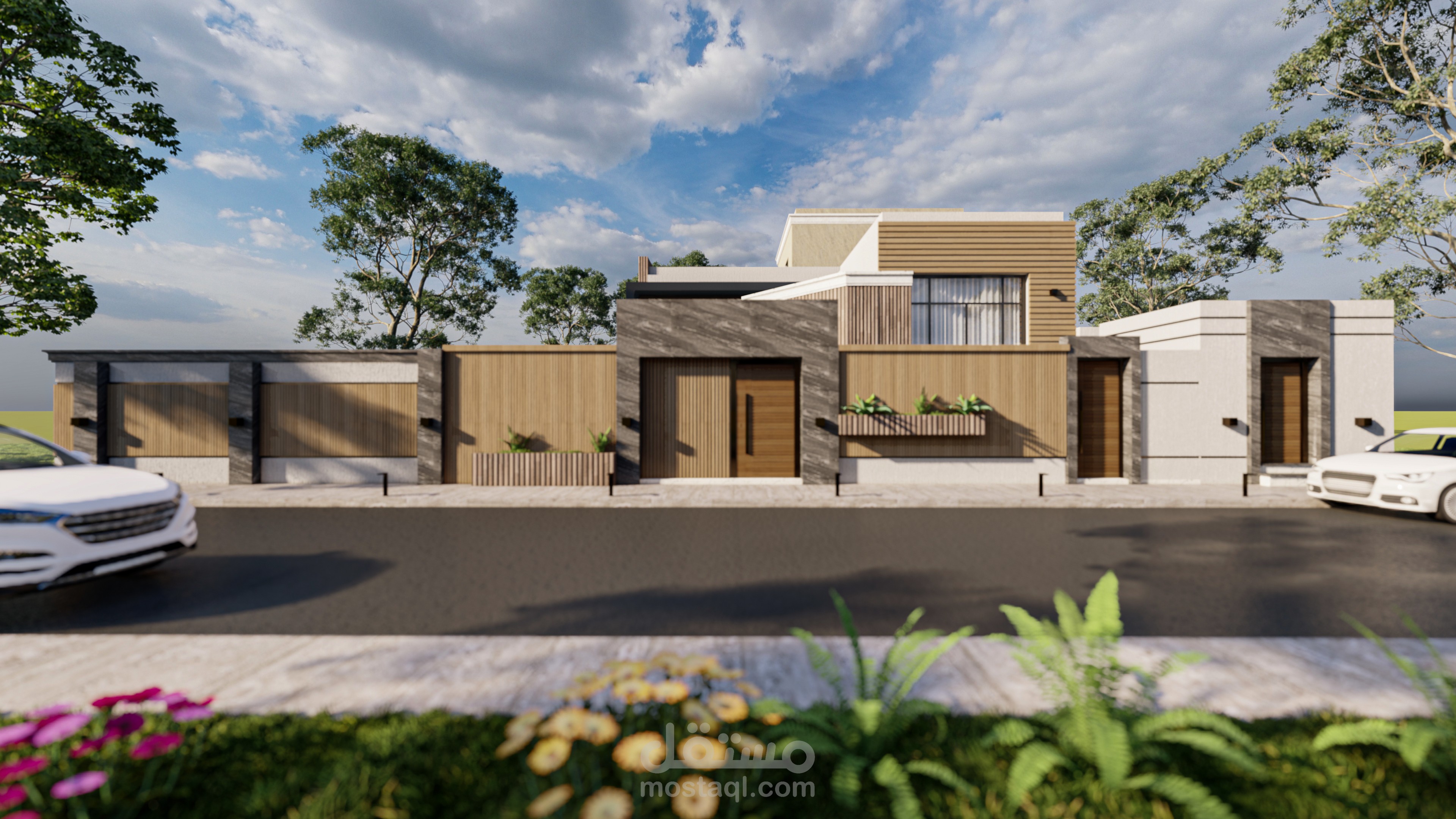 تصميم خارجي لفيلا مكونة من دورين في المملكة العربية السعودية