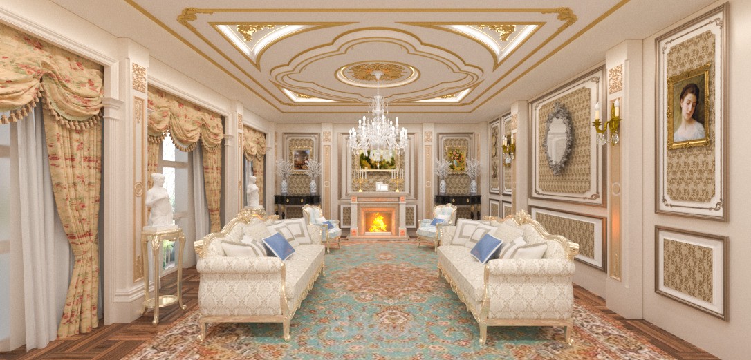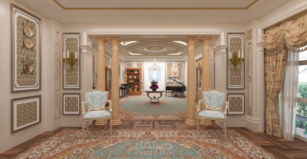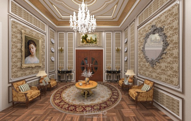 تصميم داخلى لفيلا على التراز الكلاسيك باستخدام الثرى دى ماكس