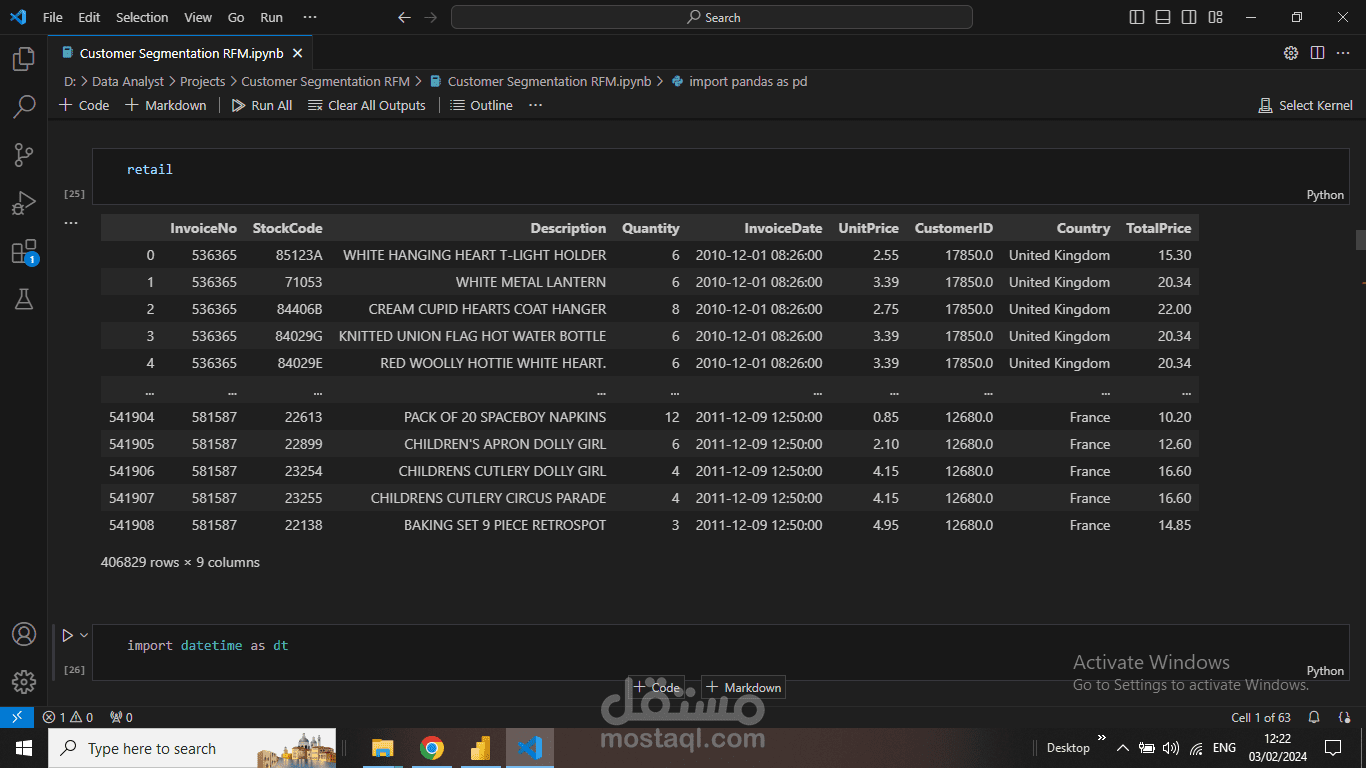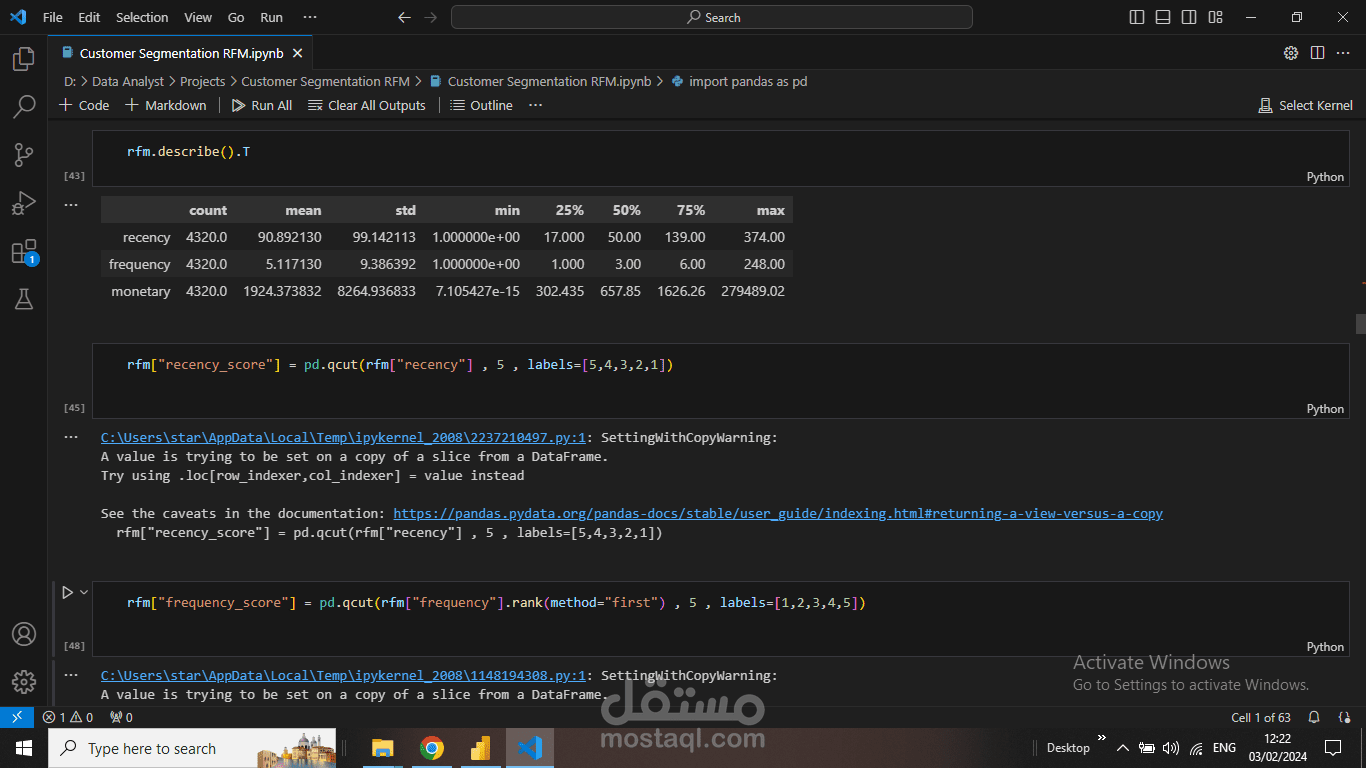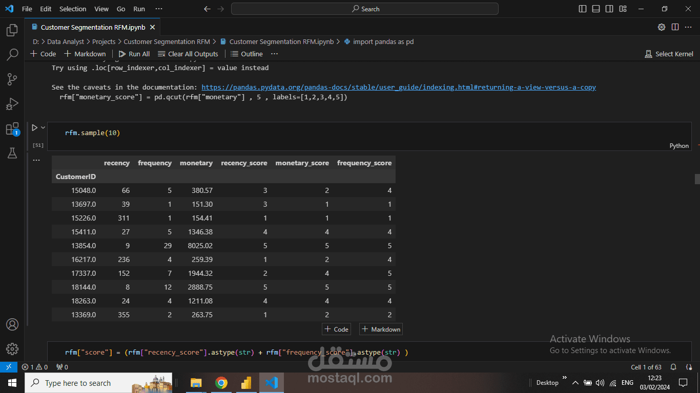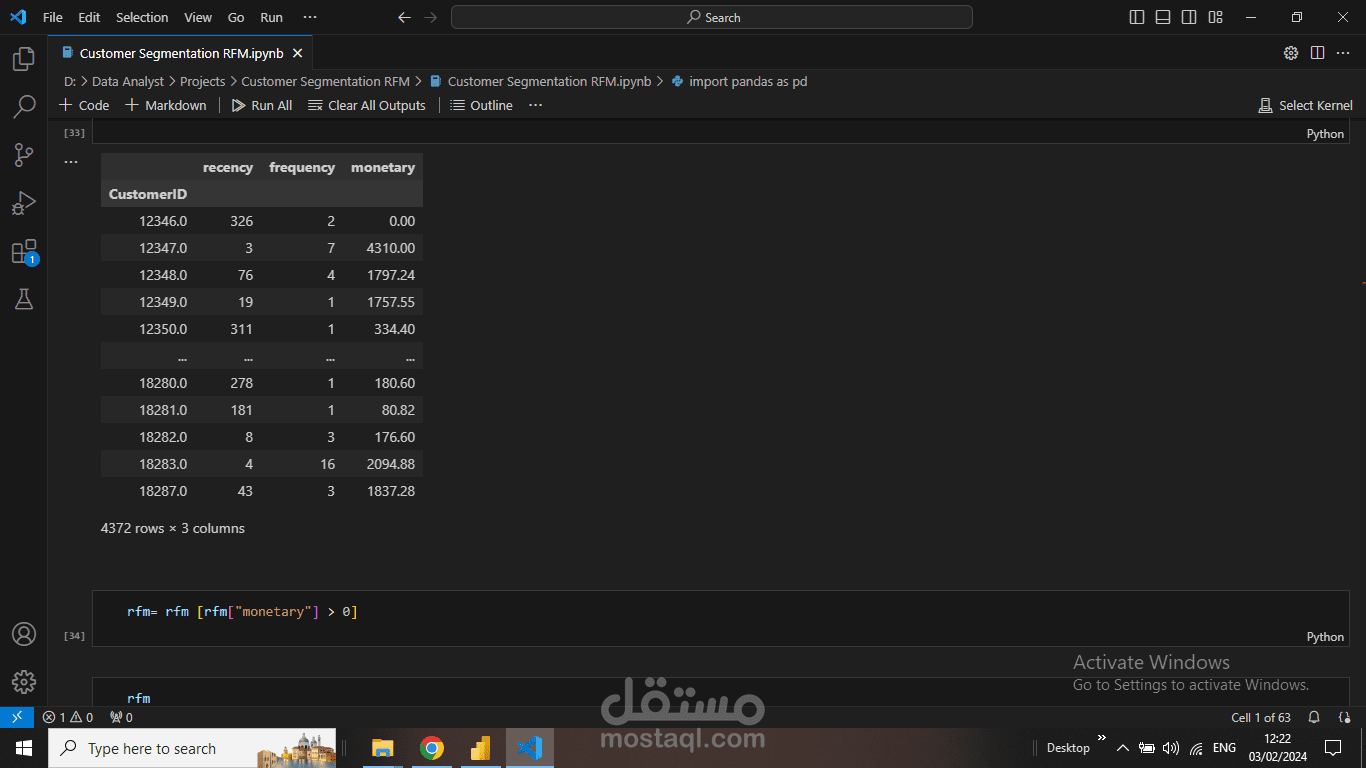 مشروع marketing analytics for costumers segmentation باستخدام استراتيجية RFM