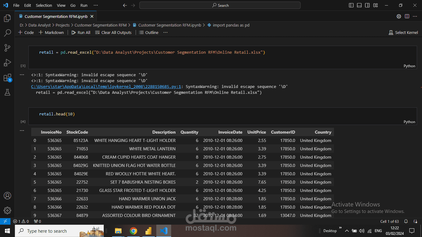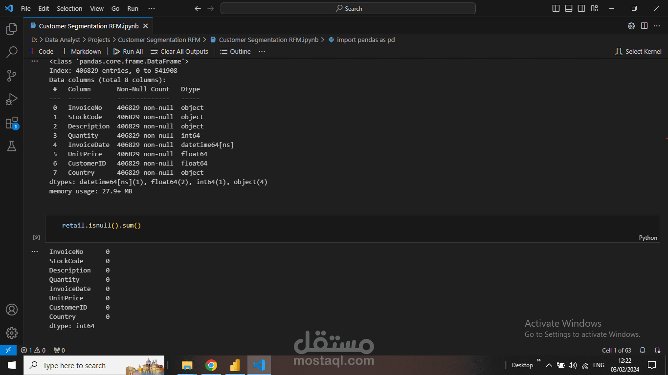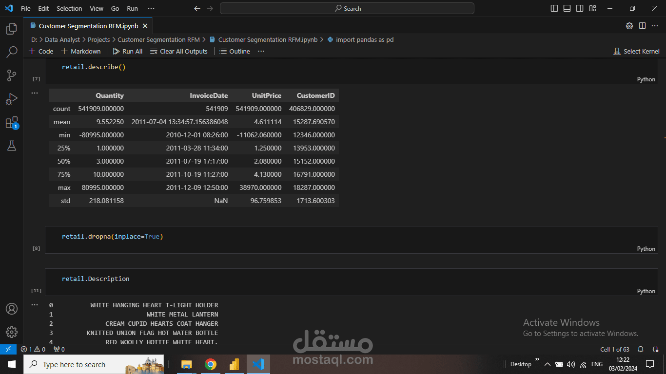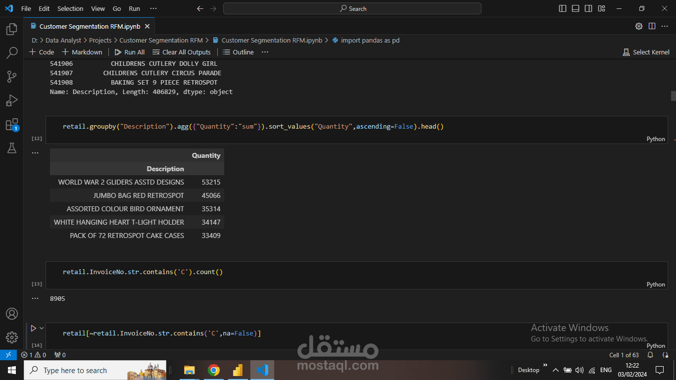 مشروع marketing analytics for costumers segmentation باستخدام استراتيجية RFM