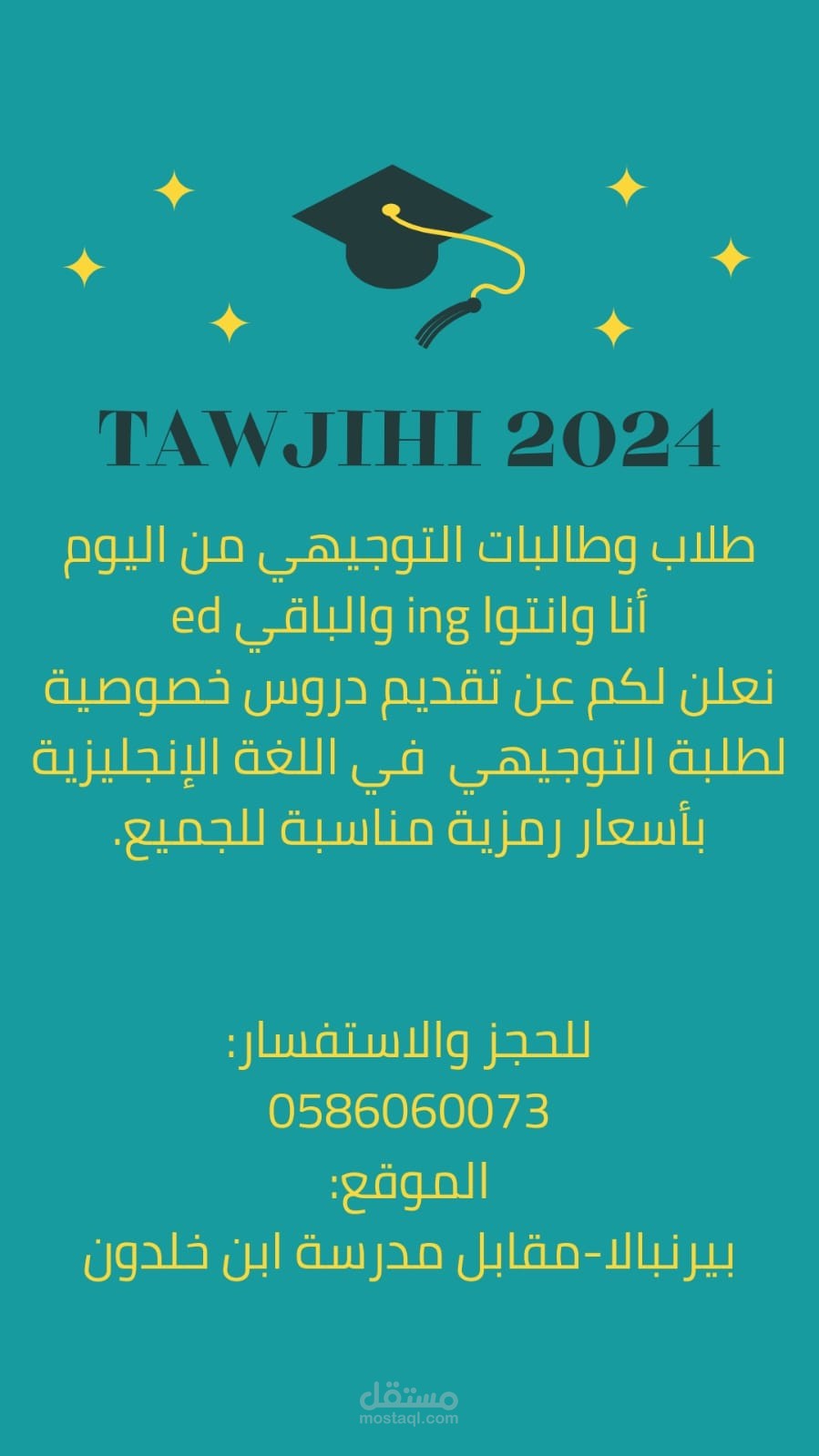إعلان عن دروس خصوصية مقدمة للصف الثاني عشر باللغة الإنجليزية