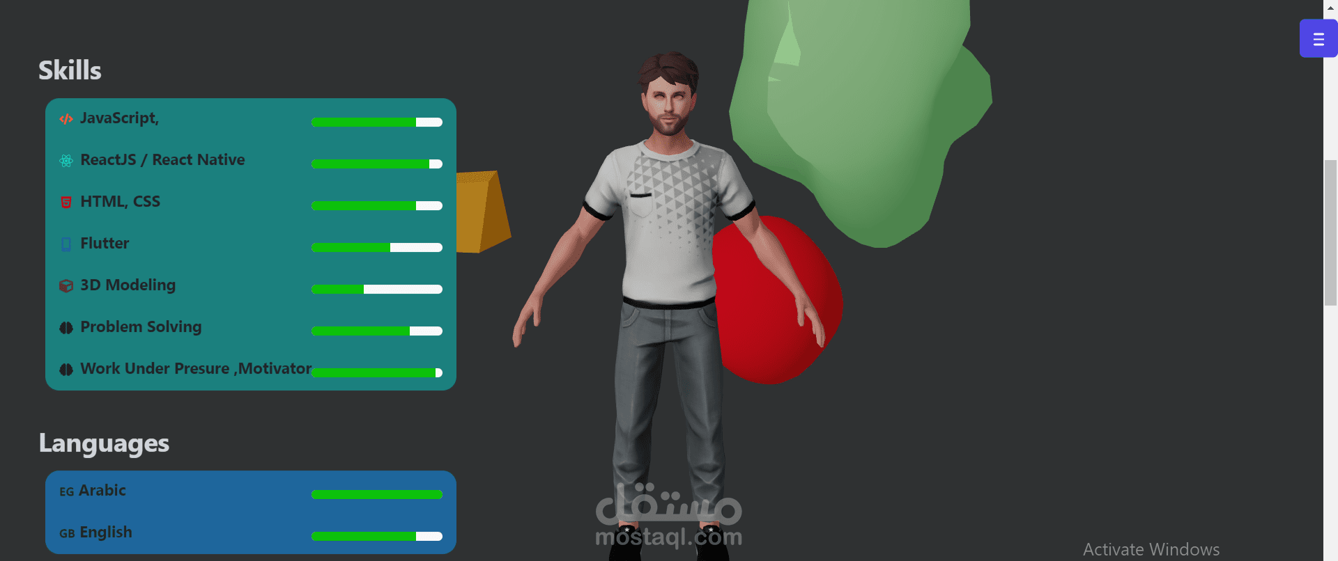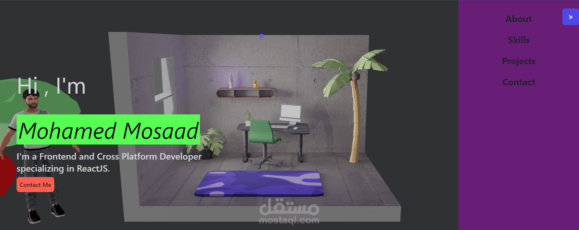 انه Portfolio خاص بي يمكنك ان تجد به تعريفي الشخص ومهاراتي واللغات التي استطيع التحدث بها ويمكنك ان تري مشاريعي التي قمت بالعمل عليها وثم التواصل معي عن طريق منصات التواصل الاجتماعي ويمكنك الاطلاع علي الCVالخاص بي .