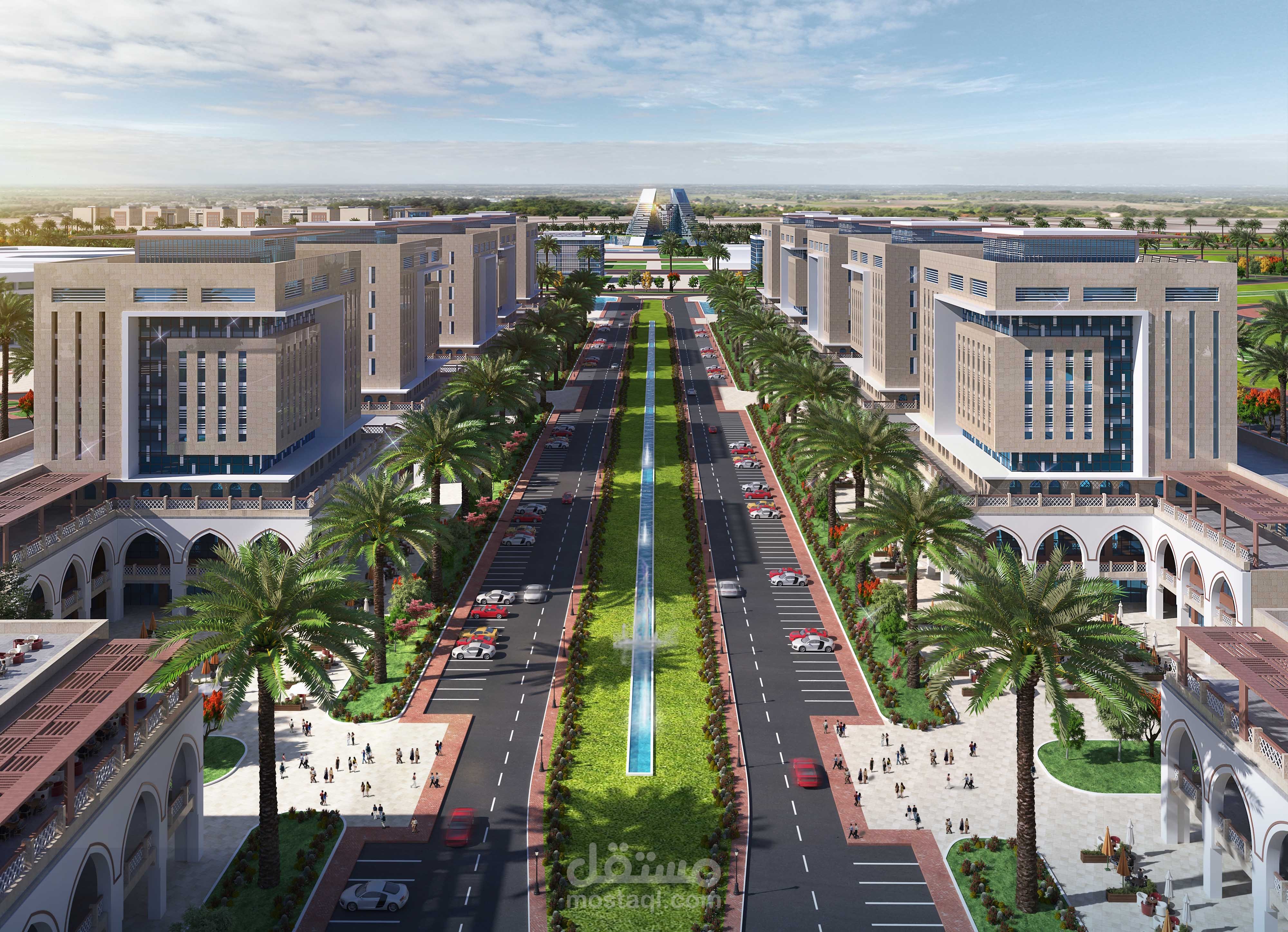 مشروع اداري تجاري سكني متكامل يضم مناطق تجارية ادارية ومناطق سكنية ومناطق ترفيهية وفندقية