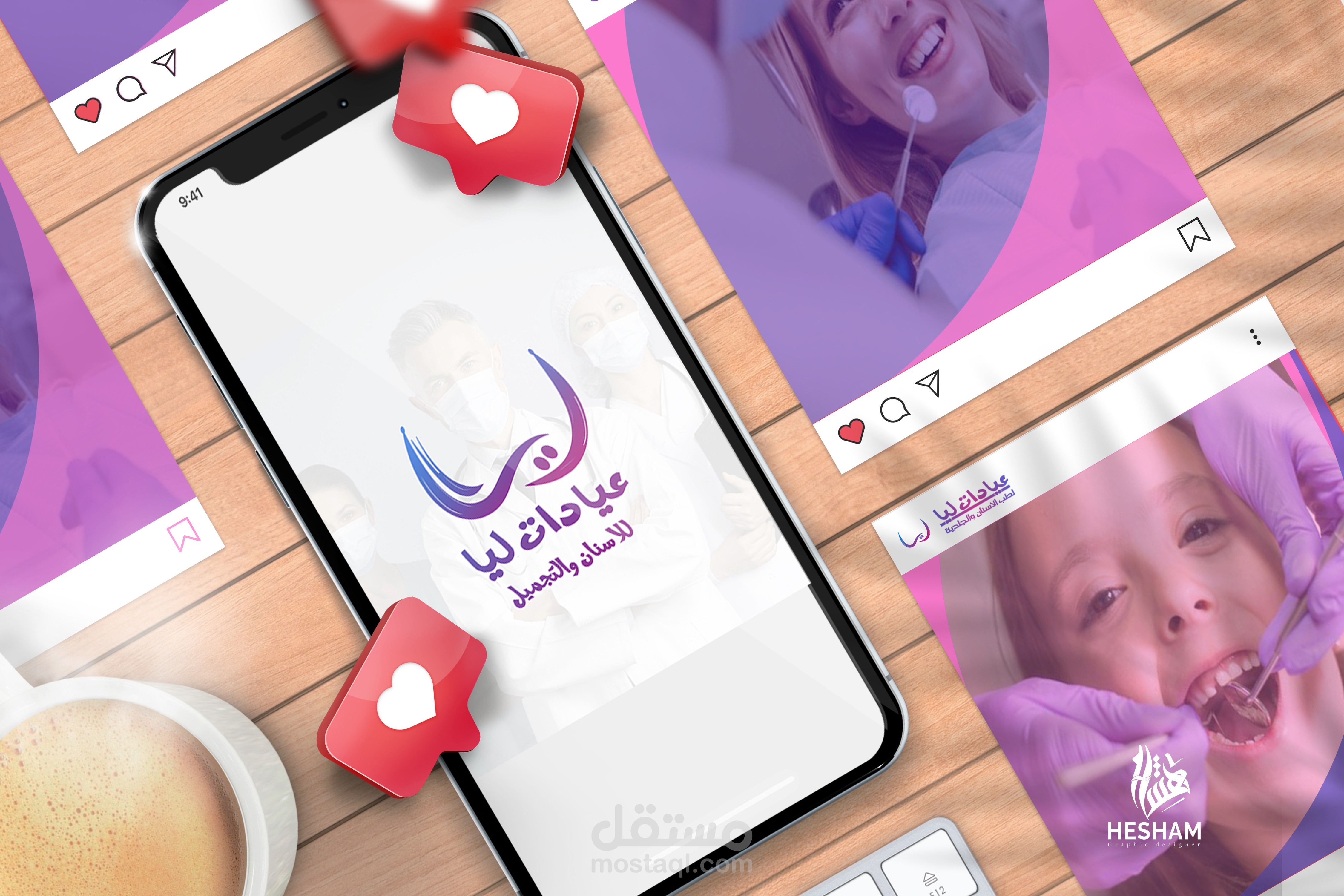 تصميم هويه بصريه لعيادة ليا لطب الاسنان والتجميل