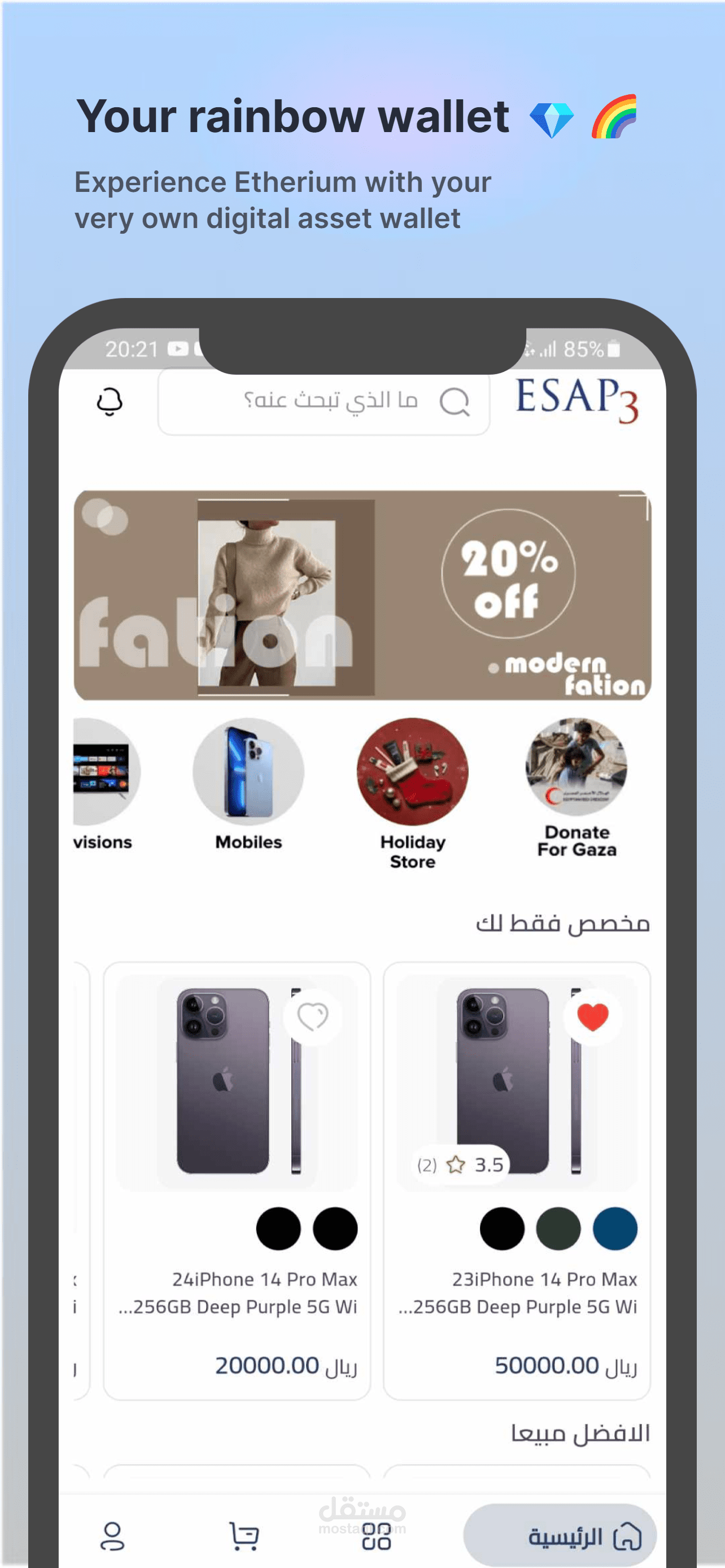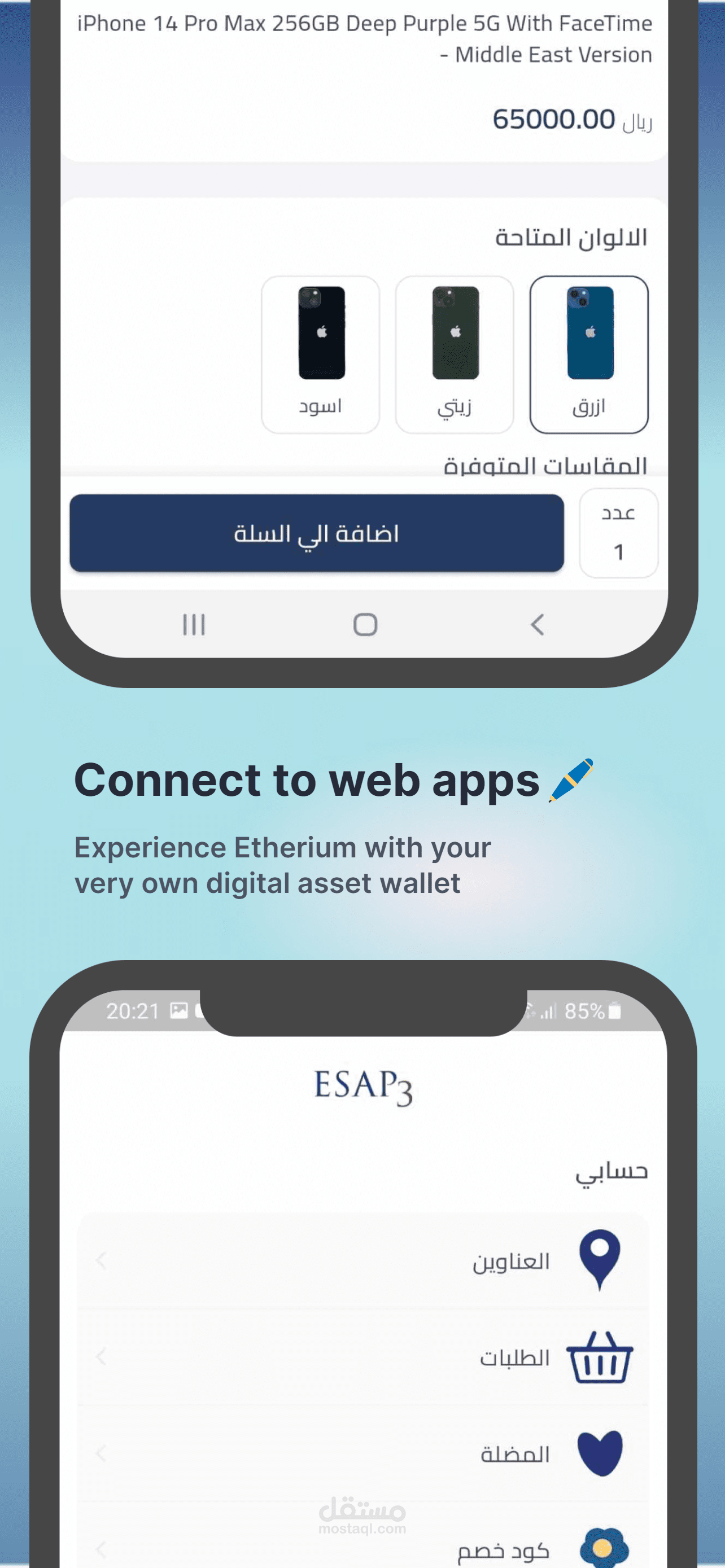 esap3 هو تطبيق متجر الكتروني متخصص في بيع جميع انواع المنتجات تم برمجتة باستخدام flutter و backend laravel يمكن لصاحب المتجر اضافة عدد لا نهائي من الاقسام والمنتجات واضافة مقاس والوان للمنتجات مع امكانيه الدفع بكل الطرق وايضا متوفر باللغتين العربيه والانجليزية كما انه يوجد لوحة تحكم صممت ب vue js للتحكم بالتطبيق