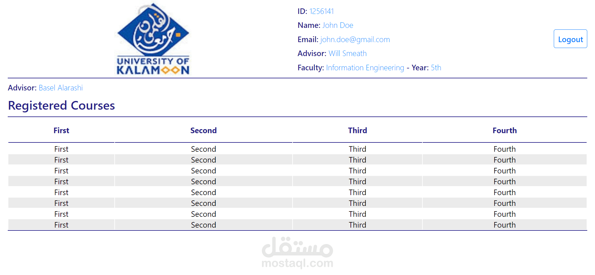موقع ويب لادارة شؤون الطلاب من حيث المواد المسجلة والعلامات والحضور والغياب وغير ذلك.