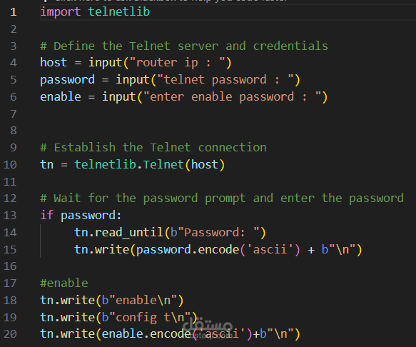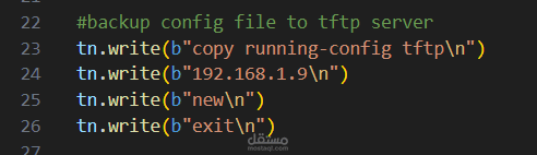 This Python script is designed to automate the backup process for a router's configuration using the telnetlib library. It establishes a Telnet connection to the router, configures specific settings, and executes operations such as backing up the configuration file to a TFTP (Trivial File Transfer Protocol) server.