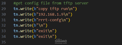In the final section of the script, it's intended to retrieve a configuration file from a TFTP server and apply it to the router. This step ensures that the router's configuration can be easily restored if needed, providing a crucial layer of data security and system reliability.