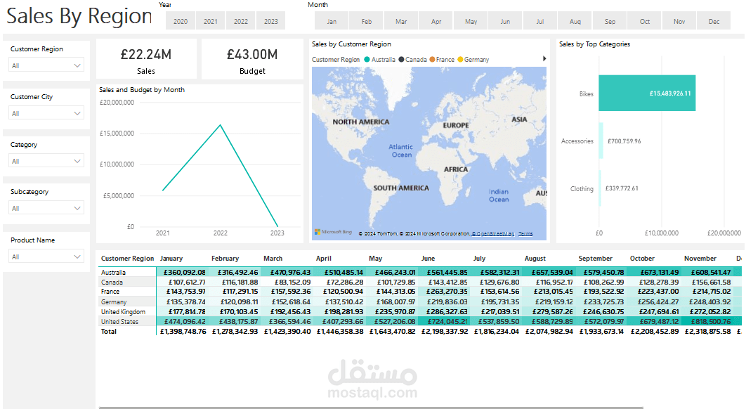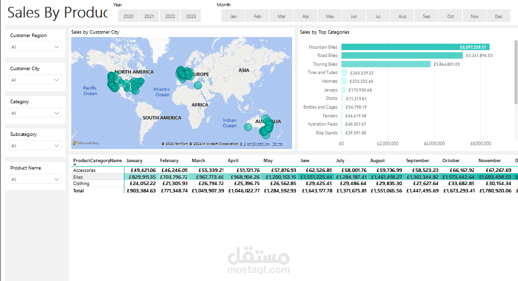 - Uncovered that 95% of sales interest was in Bikes, totaling around 5M pounds.