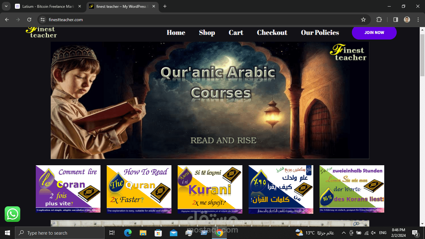 لقد قمت بإنشاء موقع ويب يسمى finestteacher.com باستخدام منصة ووردبريس، حيث قمت بعرض خبرتي في تصميم ووردبريس، تطوير ووردبريس وكتابة المحتوى. عملت بمفردي لضمان تلبية متطلبات المشروع من الجهة الأمامية والخلفية، واستخدمت تصميمًا متجاوبًا، ونفذت التفاعل باستخدام تصميم ووردبريس، تطوير ووردبريس وكتابة المحتوى. هذا المشروع قد عزز مهاراتي في إدارة الوقت، وتصميم الويب وكتابة المحتوى، مما منحني أساسًا قويًا في تصميم مواقع الويب باستخدام ووردبريس.